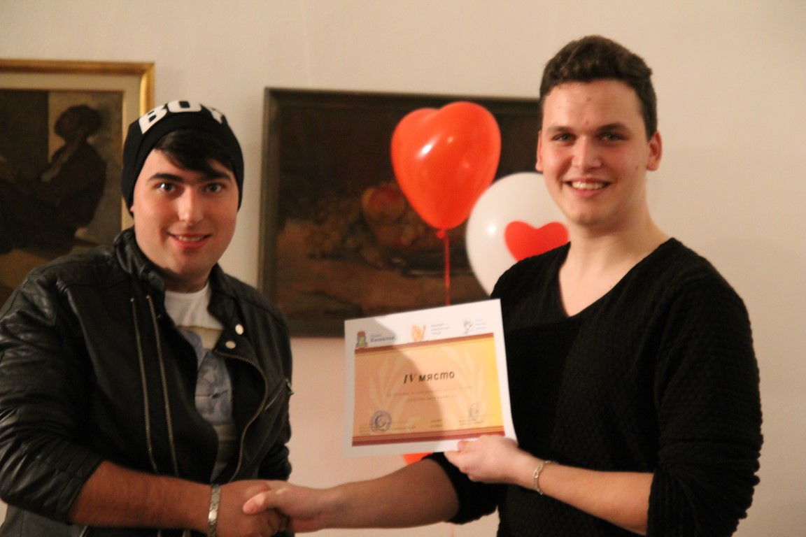 Първото място зае Петя Мартинова, ученичка в ПГ“ Иван Хаджиенов“. На второ място, комисията съставена от младежи, реши да награди Ивелина Караколева. Третото място получи Божидара Николова. Журито взе решение да даде отличи още двама в конкурса - Исмаил Хатип и Таня Бонева. Всички участници получиха и грамоти.