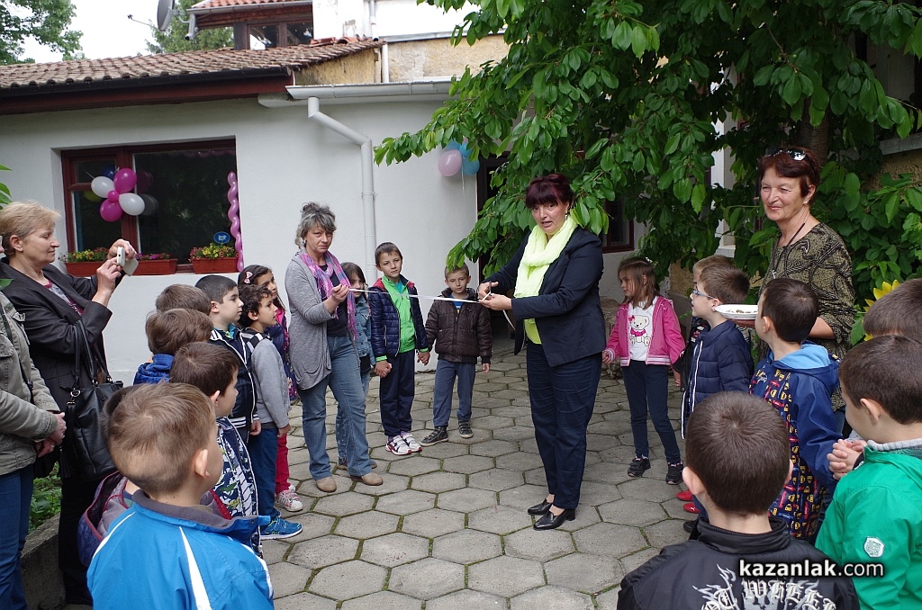 Центърът за детско творчество и четене към Общинска библиотека "Искра" бе открит тържествено днес преди обяд от бъдещите първокласници, сега все още възпитаници на подготвителната група от ДГ "Славейче" и от Анна Кожухарова - директор на казанлъшката библиотека. Целта на центъра е да бъде забавно и привлекателно място за четящите малчугани от Казанлък, където те да се забавляват, играят и опознават книгите през лятото.