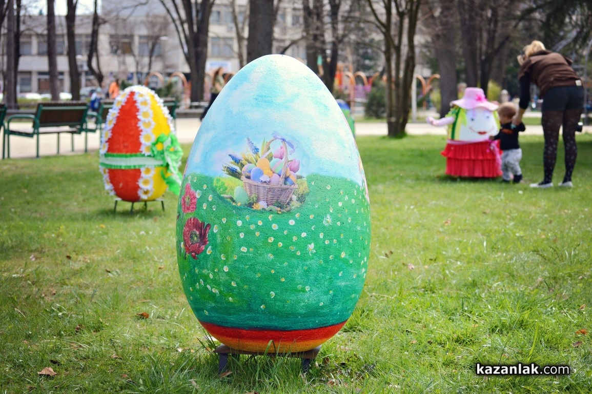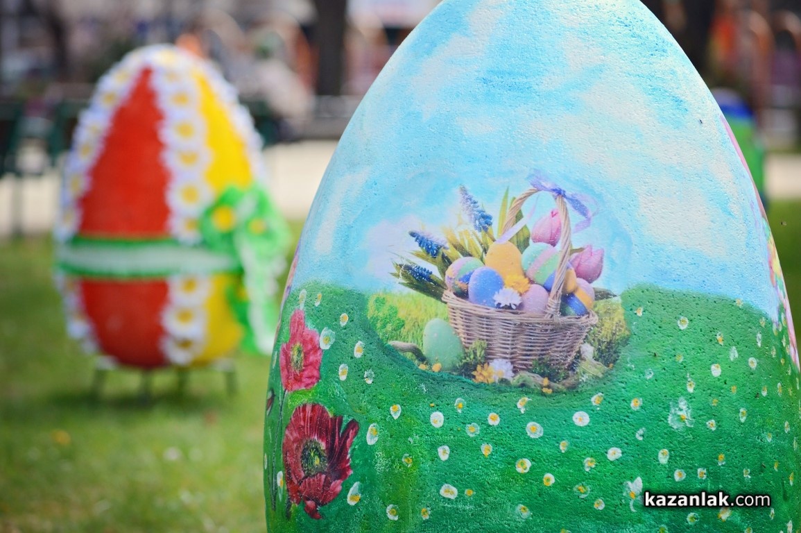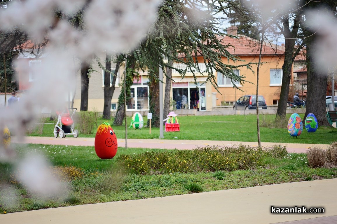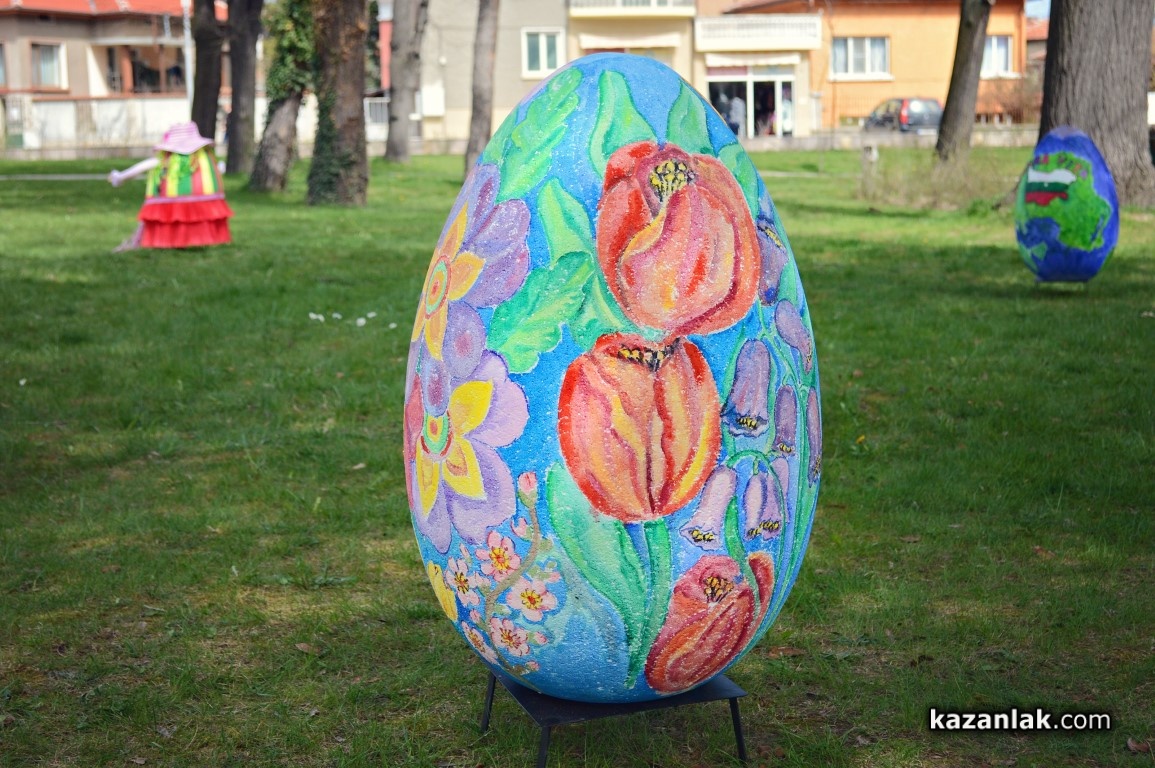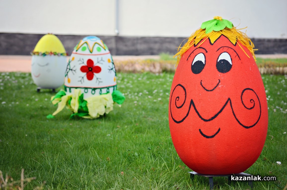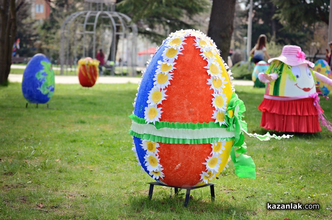 Специално за Велики Четвъртък деца и учители от детските градини в Казанлък боядисаха огромни Великденски яйца, с които Община Казанлък поздравява своите жители и им пожелава светъл и благословен Великден.