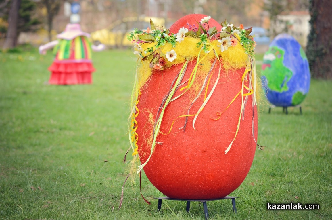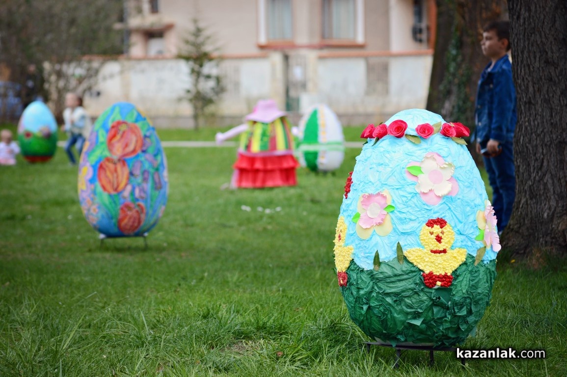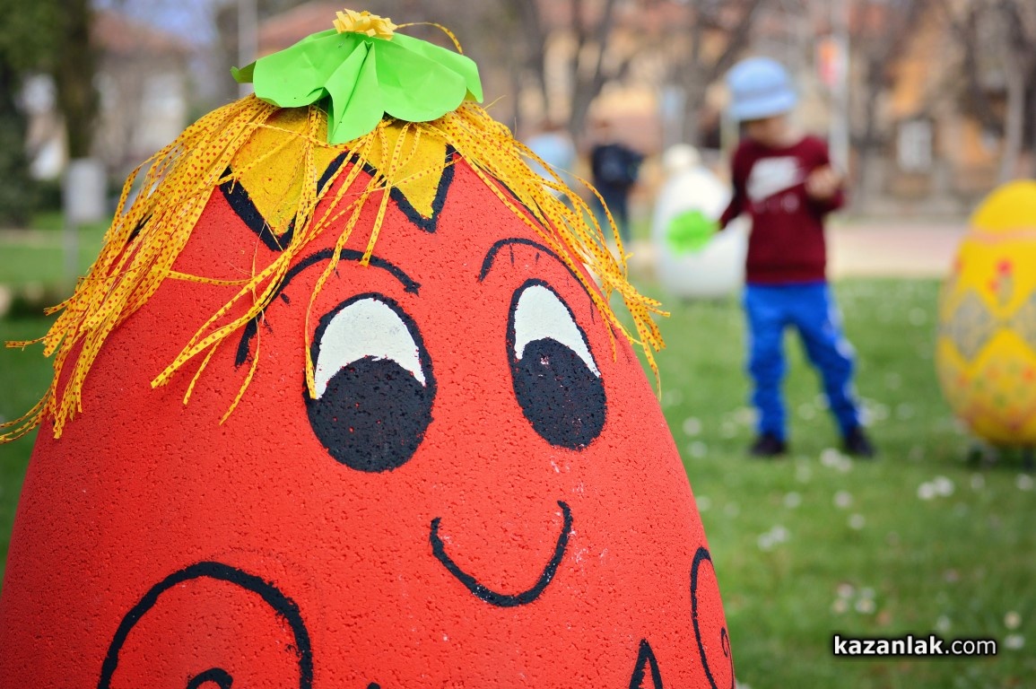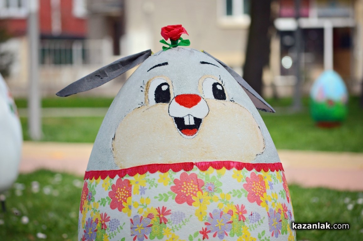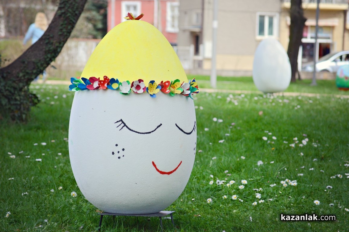 Специално за Велики Четвъртък деца и учители от детските градини в Казанлък боядисаха огромни Великденски яйца, с които Община Казанлък поздравява своите жители и им пожелава светъл и благословен Великден.