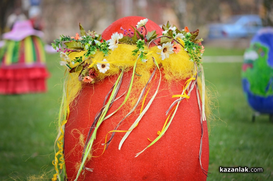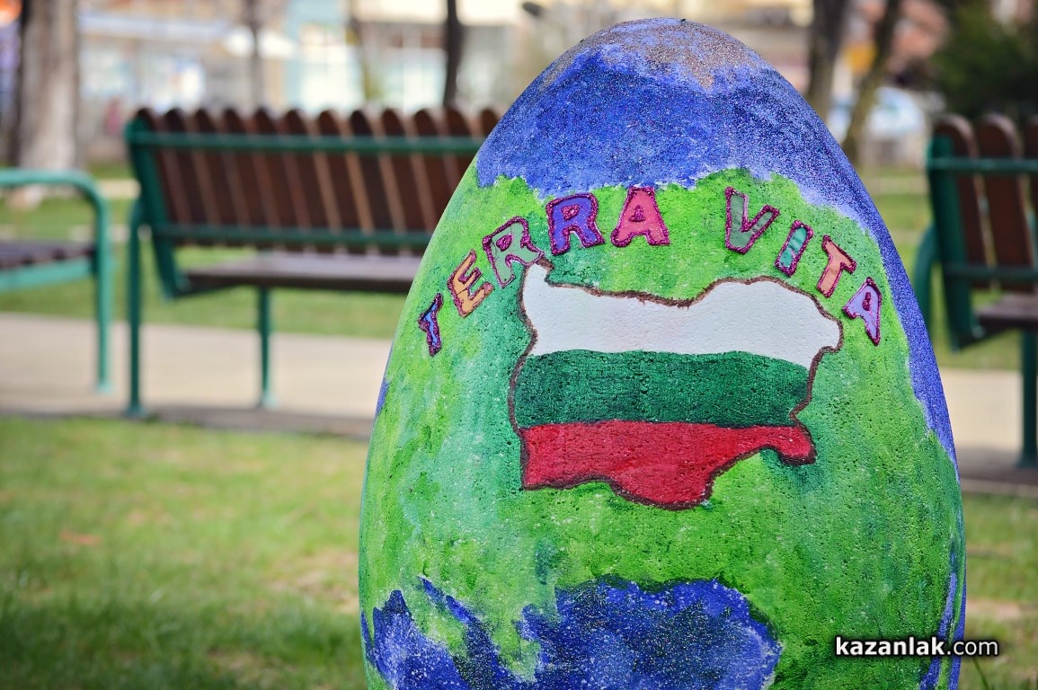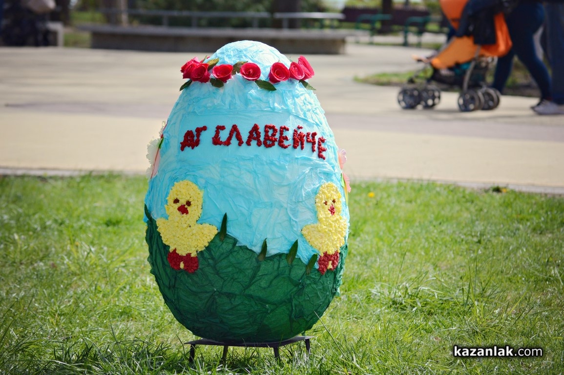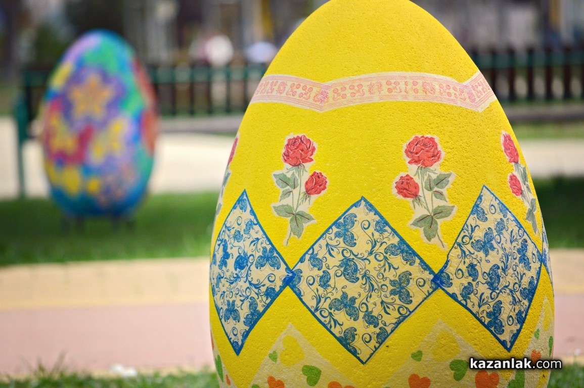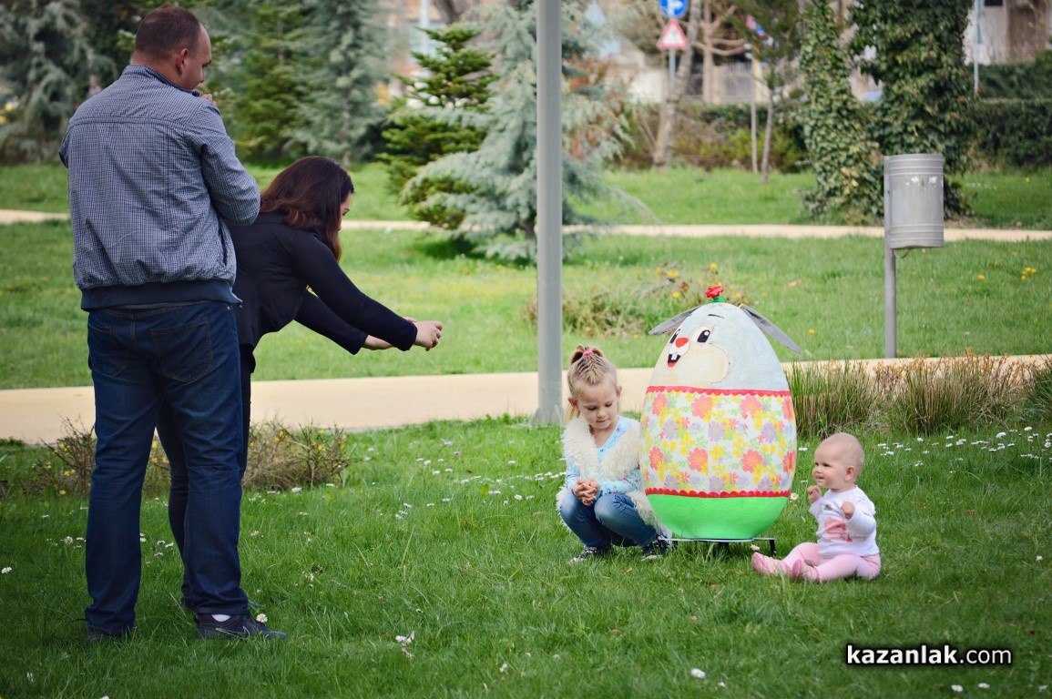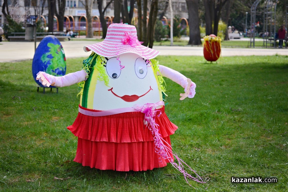 Специално за Велики Четвъртък деца и учители от детските градини в Казанлък боядисаха огромни Великденски яйца, с които Община Казанлък поздравява своите жители и им пожелава светъл и благословен Великден.