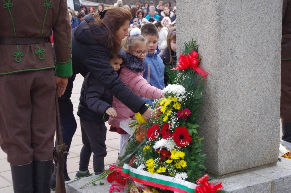 След едноминутно мълчание и свеждане на глава за Апостола, венци и цветя пред монумента в парк „Васил Левски“ бяха поднесени от Кмета Галина Стоянова, от името на председателя на Общински съвет – Казанлък Николай Златанов, общински съветници и служители, представители на културни институти, политически партии и патриотични организации, родолюбиви граждани, много ученици и деца.