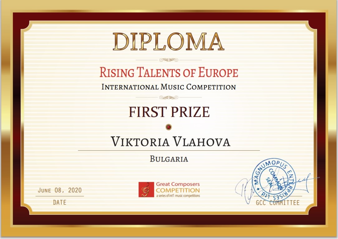 В конкуренция с млади таланти от цяла Европа първата награда на Вики е единствена във възрастовата група 14-16 години и е признание за всекдневния труд, постоянството и любовта и към музиката.