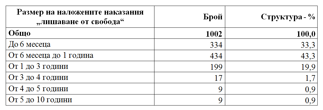 С осъдителни присъди (ефективни и условни) са приключили делата за 1 298 извършени престъпления, което е с 3.2% по-малко в сравнение с 2018 година.