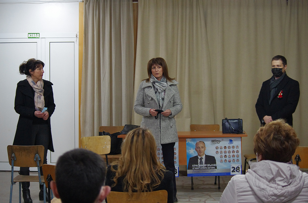 „Комуникацията между жителите на малките населени места и представителите на властта е наистина важна, за да се случва развитието на всеки регион. В годините успяхме да постигнем не малко за нашата община в различни насоки – инфраструктура, образование, здравеопазване, социални услуги. Комуникацията между бизнес и институции също е от съществено значение и моята работа като директор на дирекция „Бюро по труда” е била именно такава - да бъда свързващото звено между работодатели и хората, които искат да се реализират на пазара на труда”, заяви на срещата ИЛИАНА ЖЕКОВА. Към думите й се присъедини МАРИЯ ГИНЕВА, която от години работи в социалната сфера, като фокусът на работата й е насочен към деца и семейства в неравностойно положение. Тя е участвала в процеса на деинституционализация на домовете за деца с увреждания и създаването на социални услуги за деца с увреждания.