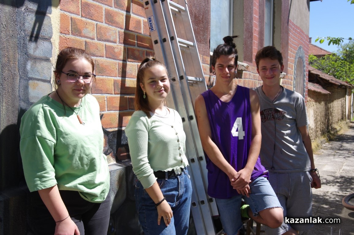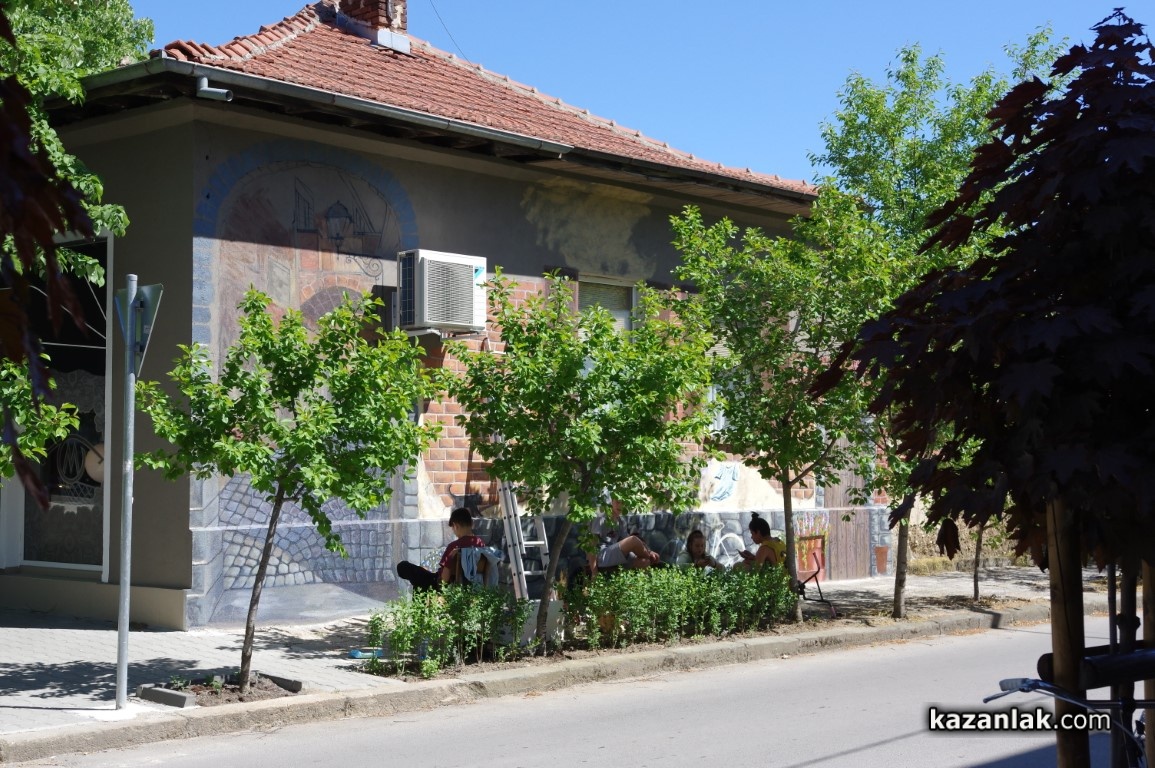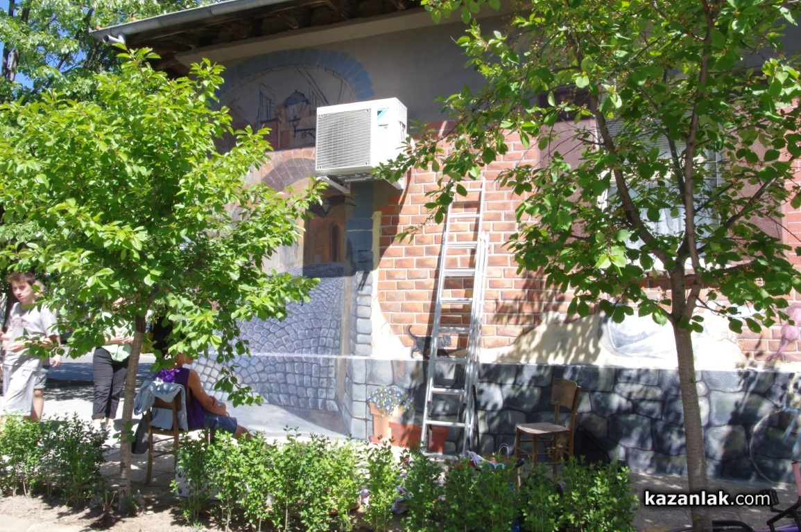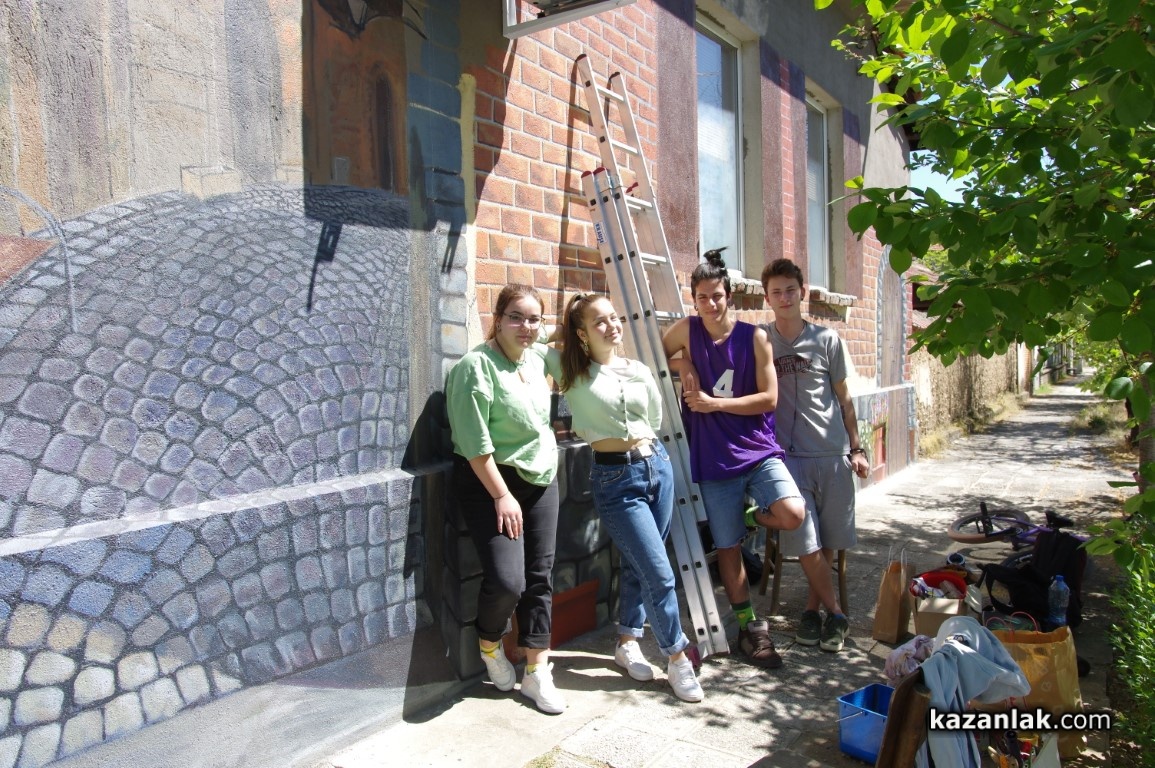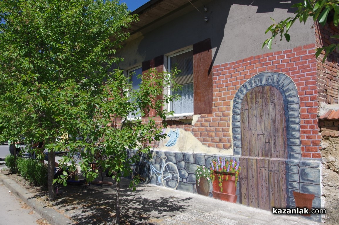 От няколко дни казанлъчани, минавайки по ул. „Стефан Караджа”, забелязват как една обикновена къща придобива нов, по-цветен облик. Западната фасада на къщата, намираща се на кръстовището по-известно като „петте кьошета”, срещу италианската пекарна „Джорджо”, заприлича на живописен пейзаж на малка италианска уличка.