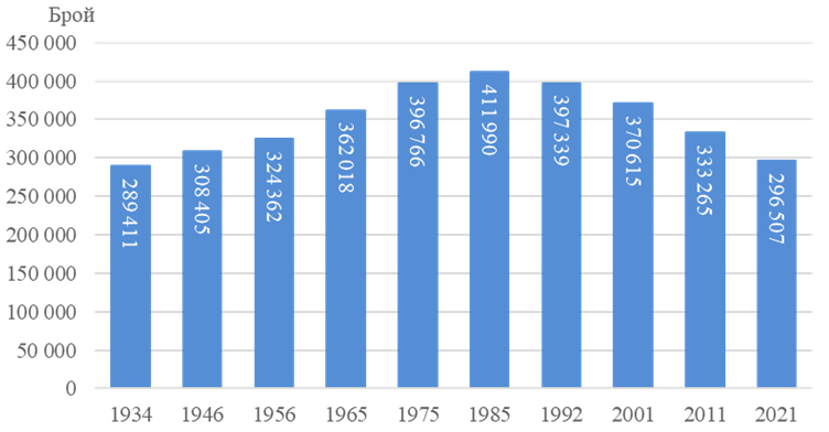 В периода между последните две преброявания населението на областта е намаляло с 36 758 души, или с 11.0%. Резултатите показват, че средногодишният темп на намаление се увеличава от 1.1 на година през периода 2001 - 2011 г. на 1.2 през периода 2011 - 2021 година.