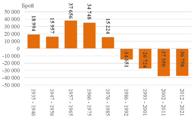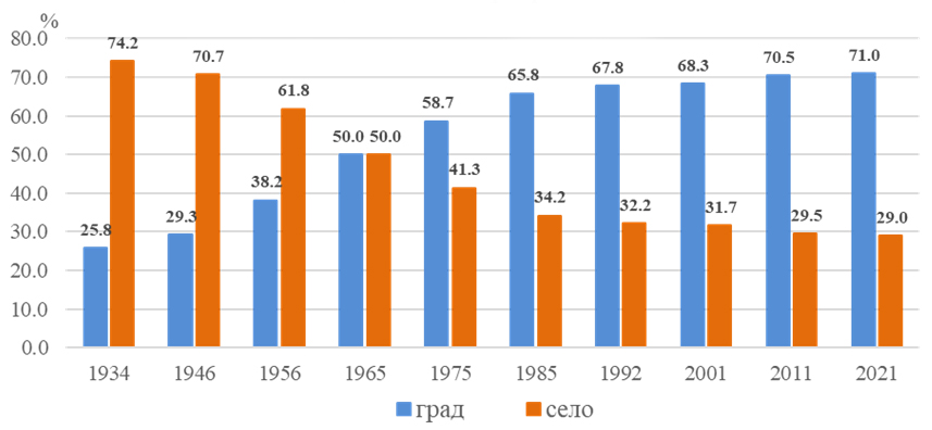 В периода между двете преброявания населението в градовете е намаляло с 24 547 души, или с 10.4%, а в селата с 12 211 души (12.4%).