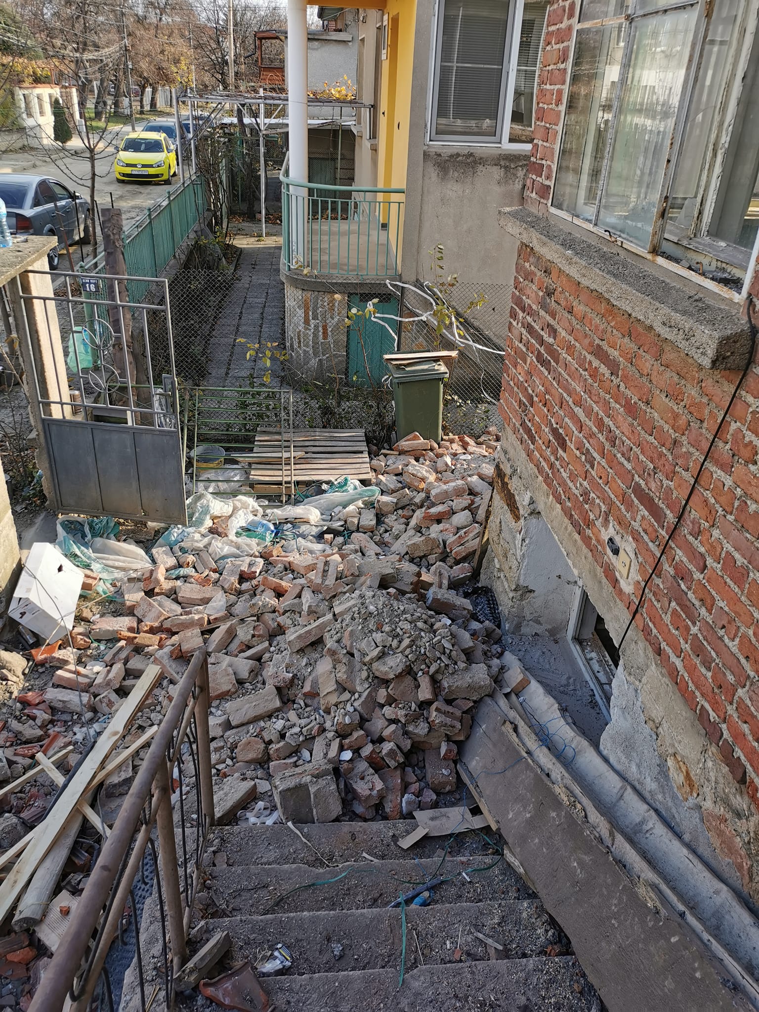 Чистене на строителни отпадъци, както и вещи от мазета, тавани, гаражи, вилни постройки, бараки. Почистване и заравняване на дворове и терени.