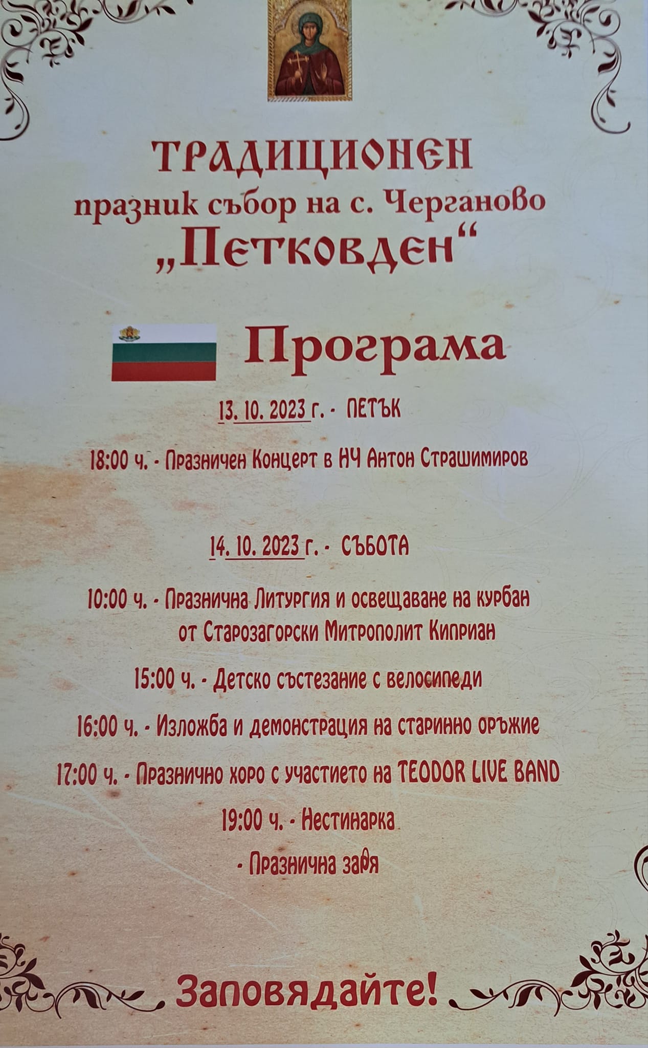 Началото на празника в село „Черганово“ ще бъде поставен в петъчния ден с концерт в НЧ „Антон Страшимиров“.