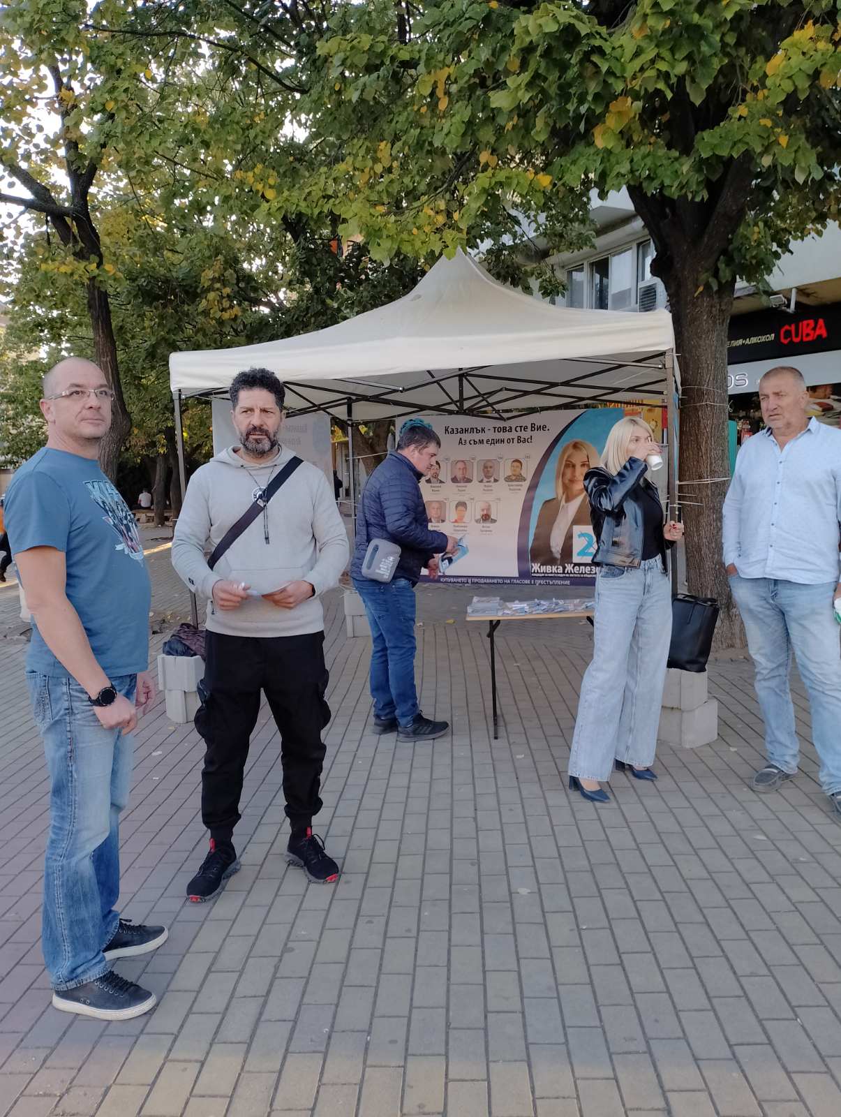 С тях може да се срещнете, както и с кандидата за кмет на „Има такъв народ“ и водач на листата с общински съветници Живка Железова всяка вечер между 16 и 19 часа на шатрата на формацията на площад „Севтополис“ с Казанлък.