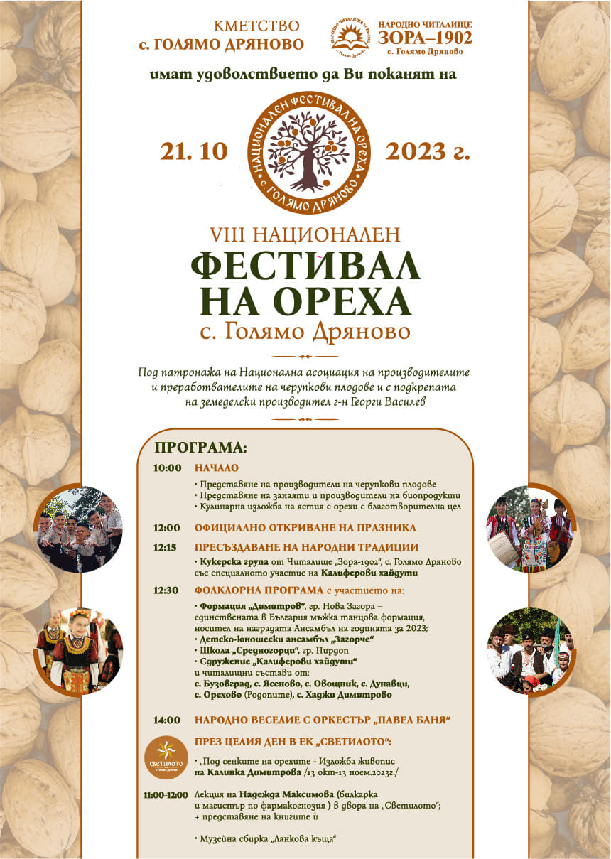 Тази събота, в село Голямо Дряново ще се състои Осмия национален фестивал на ореха, който се провежда традиционно под патронажа на Националната асоциация на производителите и преработвателите на черупкови плодове и с подкрепата на земеделския производител Георги Василиев.
