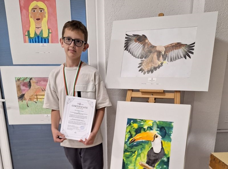 Иван Иванов от Школа за изобразително изкуство „Ренина“ с преподавател Ренина Лекова при НЧ „Възродена Искра – 2000“ спечели трето място и бронзов медал.
