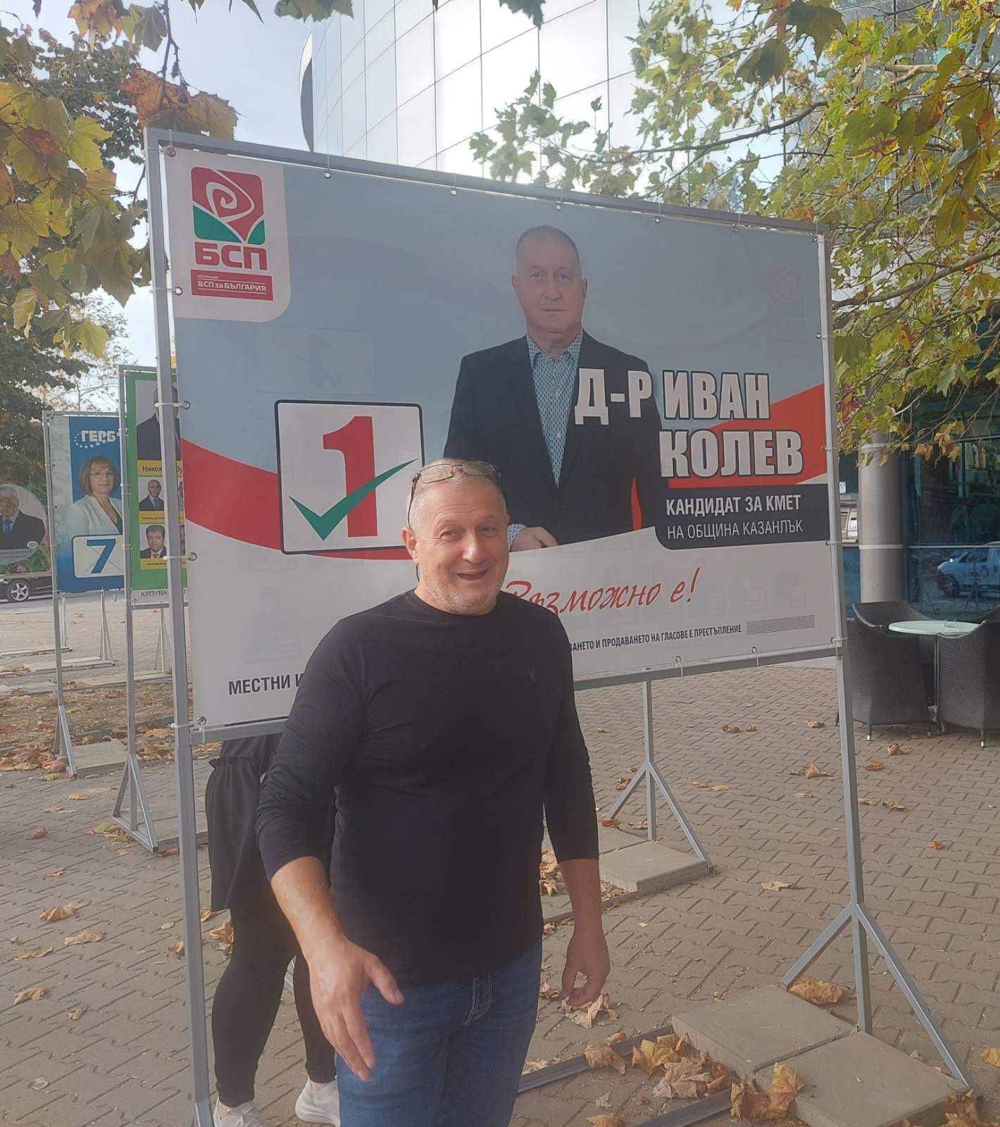 Част от предизборната агитация на кандидата за кмет на Община Казанлък д-р Иван Колев, №1 в интегралната бюлетина, е разположена върху улични стълбове в Казанлък, които са частна собственост. За използването им за тази цел е подписан договор.