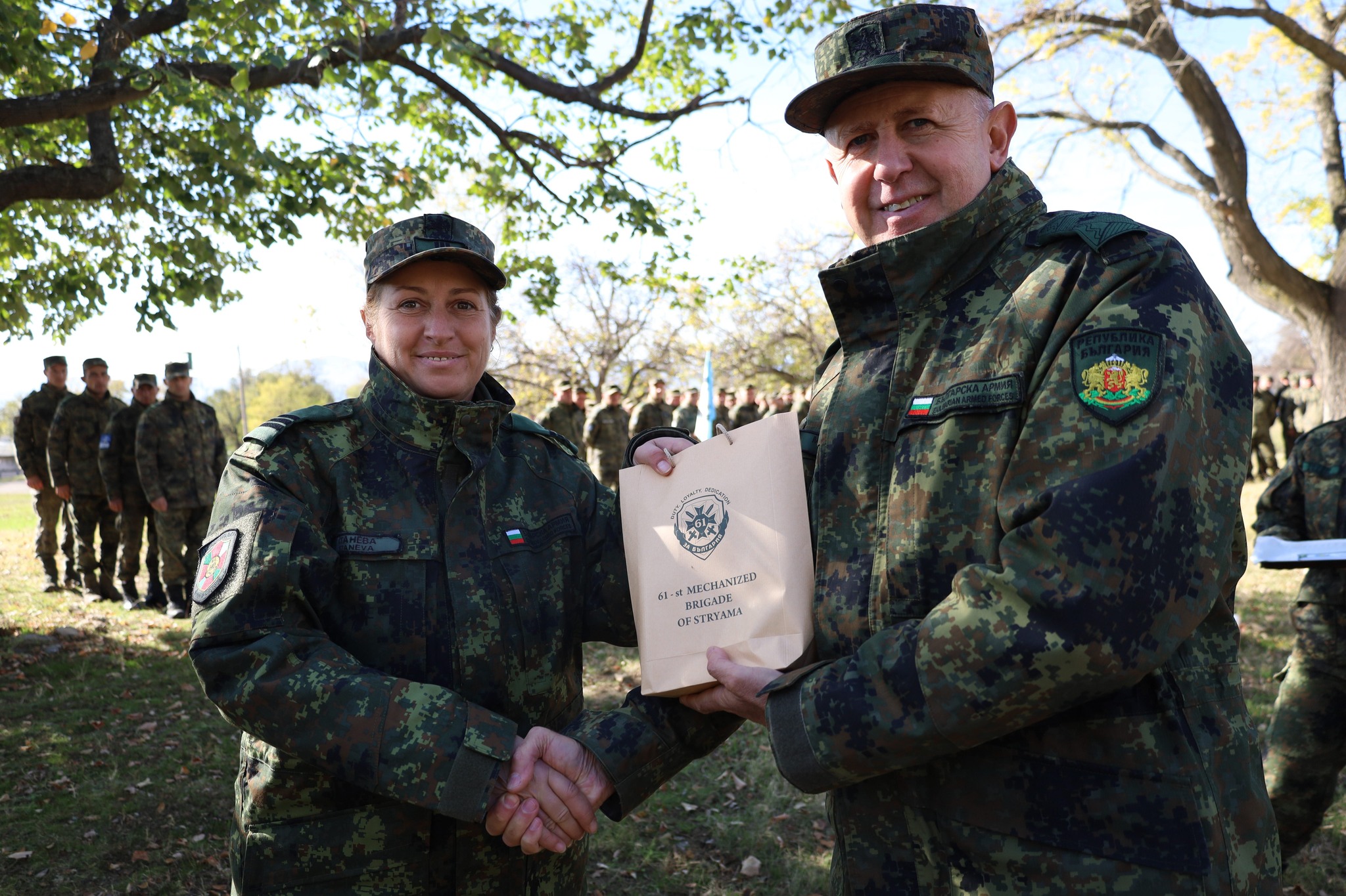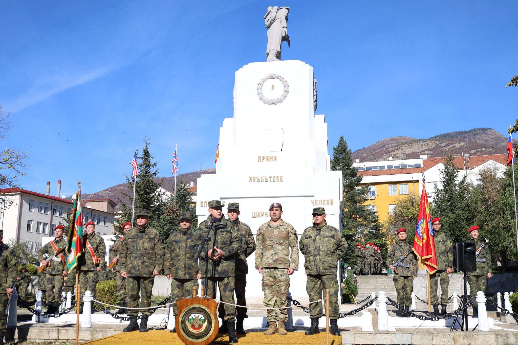 В своето приветствие към личния състав, командирът на бригадата бригаден генерал Маргарит Михайлов припомни славната Сливнишка епопея и пожела на военнослужещите да бъдат здрави, да носят същата воля и всеотдайност в сърцата си, за да бъдат достойни войни на 61 Срямска механизиран бригада, Сухопътните войски и Българската армия!