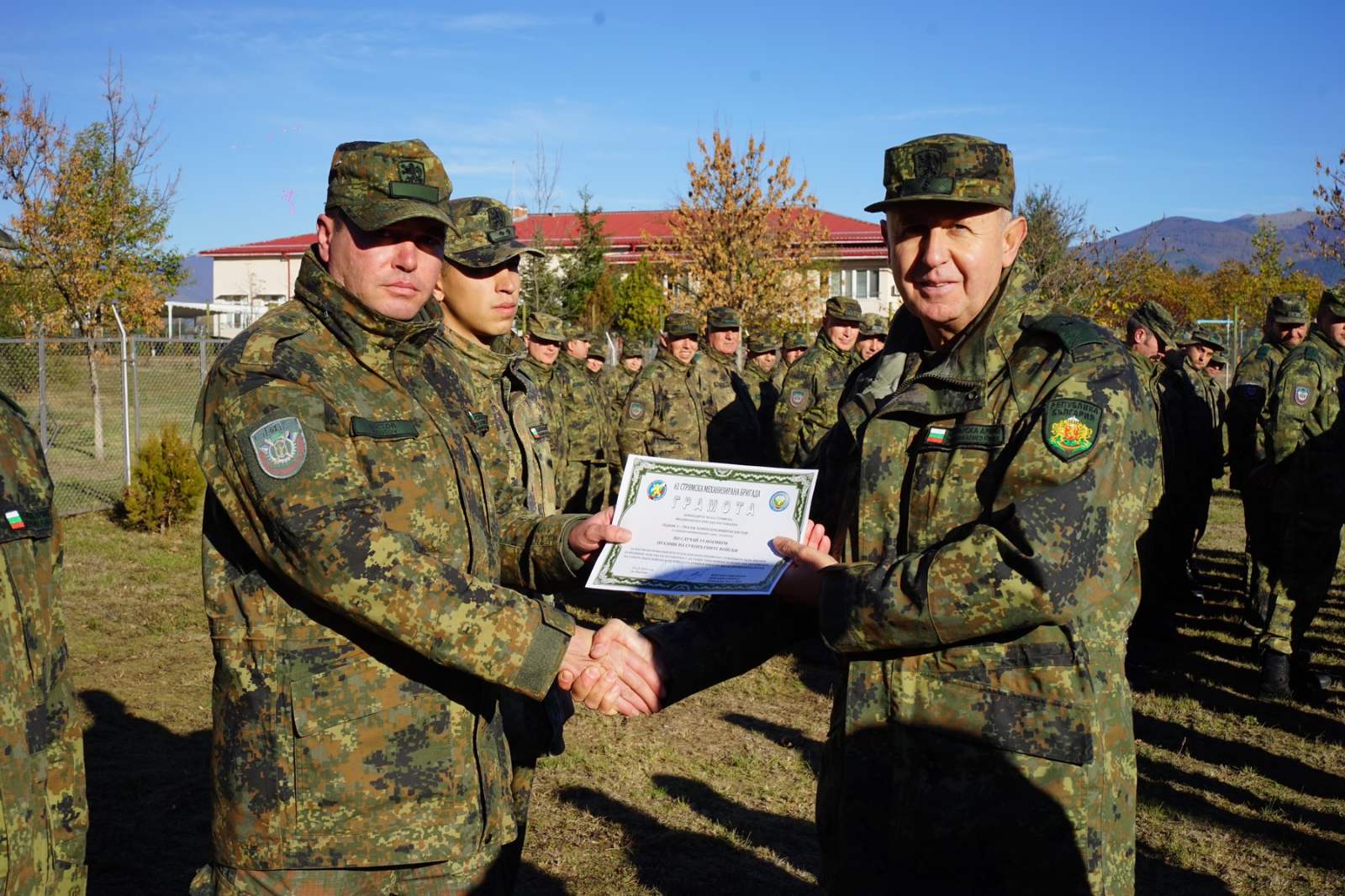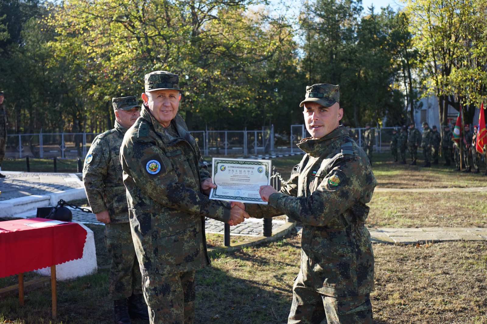 Беше прочетен поздравителен адрес от командира на Сухопътните войски генерал-майор Деян Дешков по повод празника и заповеди за награждаване от министъра на отбраната, началника на отбраната и командира на Сухопътните войски. Бригаден генерал Маргарит Михайлов връчи награди на военнослужещите и цивилните служители от състава на бригдата, показали високи резултати при изпълнение на служебните си задължения.