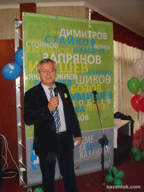 „На предстоящите избори ще вкараме 20 съветници в Общинския съвет, защото толкова са експертите в листата ни”, каза водачът на листата на Експерти за Казанлък Николай Ибушев. „На следващите избори обаче ще включим и вас в листата, защото всеки един от присъстващите тук е експерт. Ние ще разчитаме на вас, вие също може да разчитате на нас”, обърна се към гостите Ибушев.