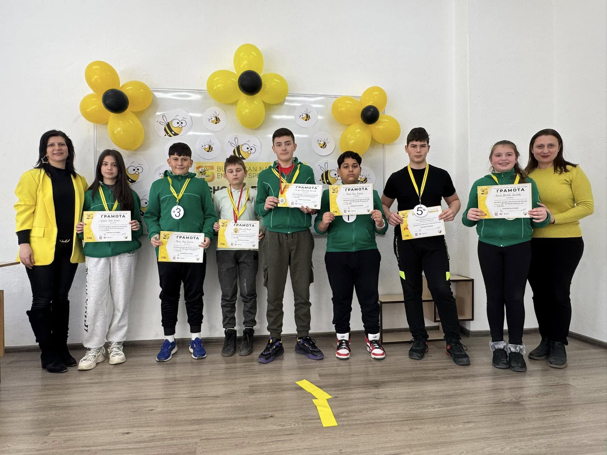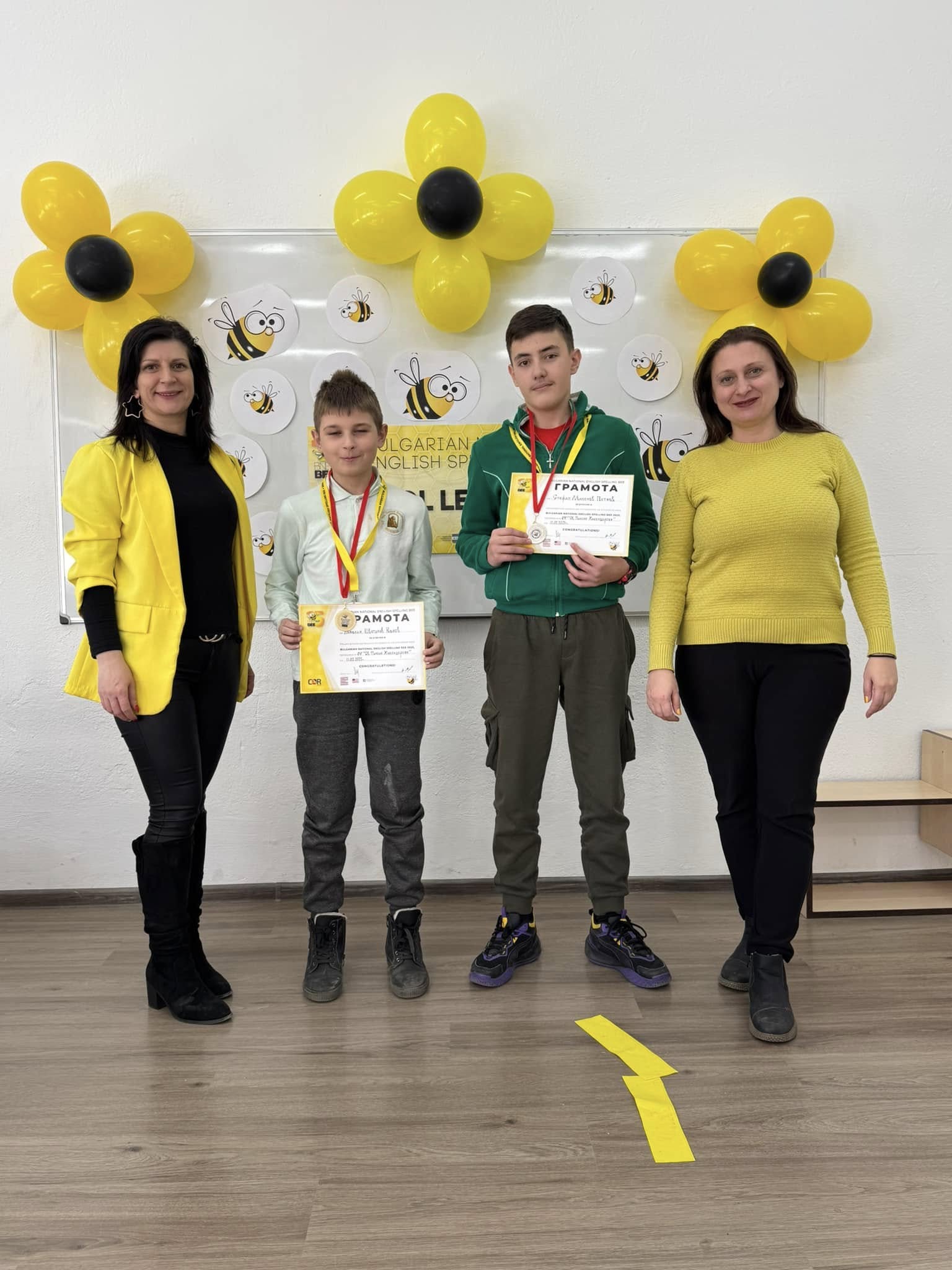 В Spelling Bee (възрастова група от 5 до 7 клас) участваха 7 ученици. Първото място достойно спечели Николай Цветанов Колев от 6.б клас, а на второ място се класира Стефан Миленов Петков от 6.б клас.