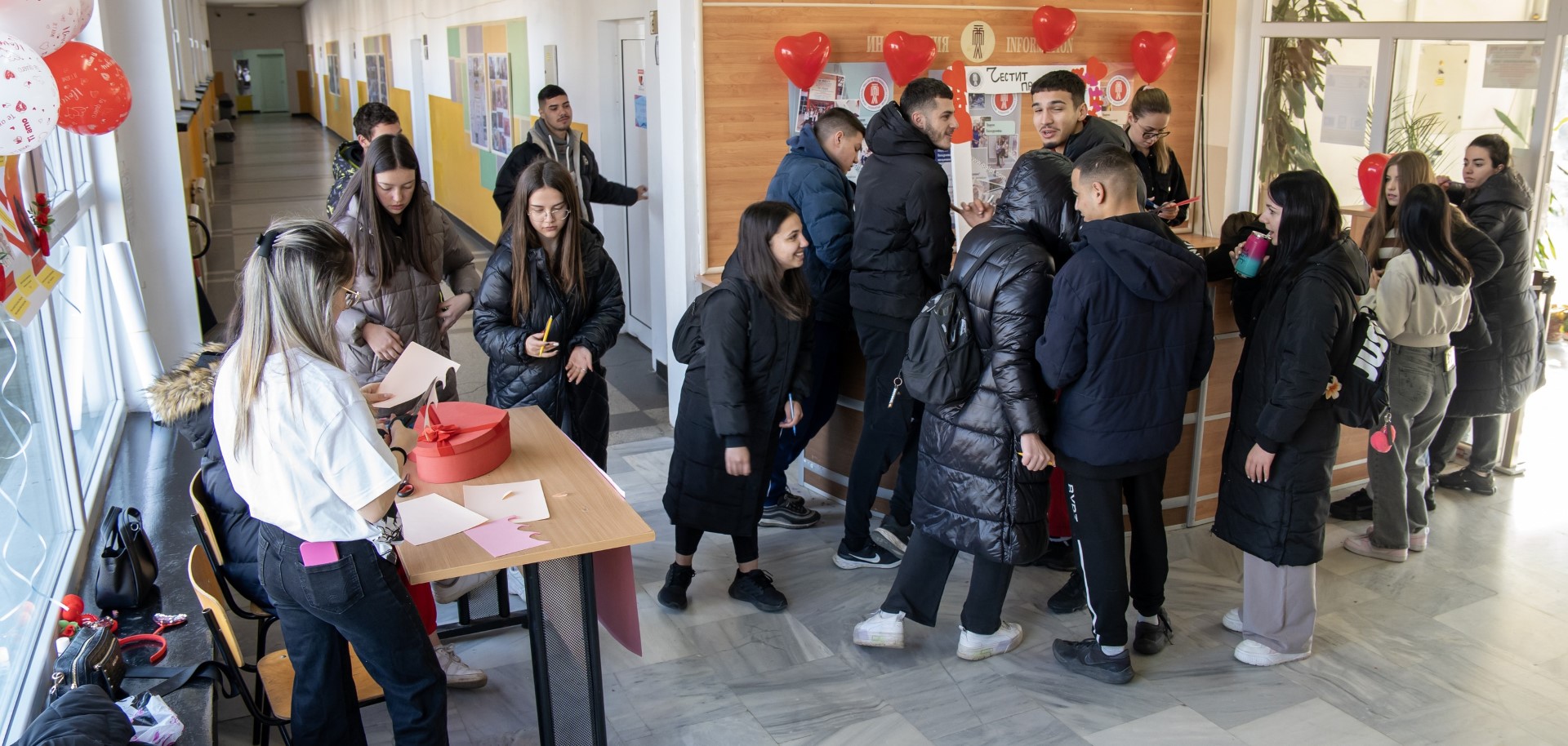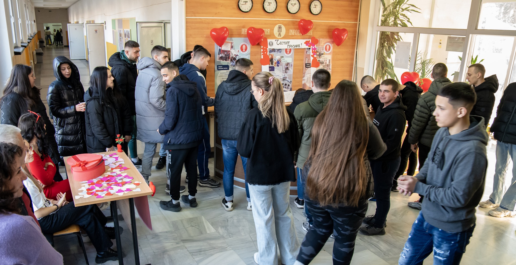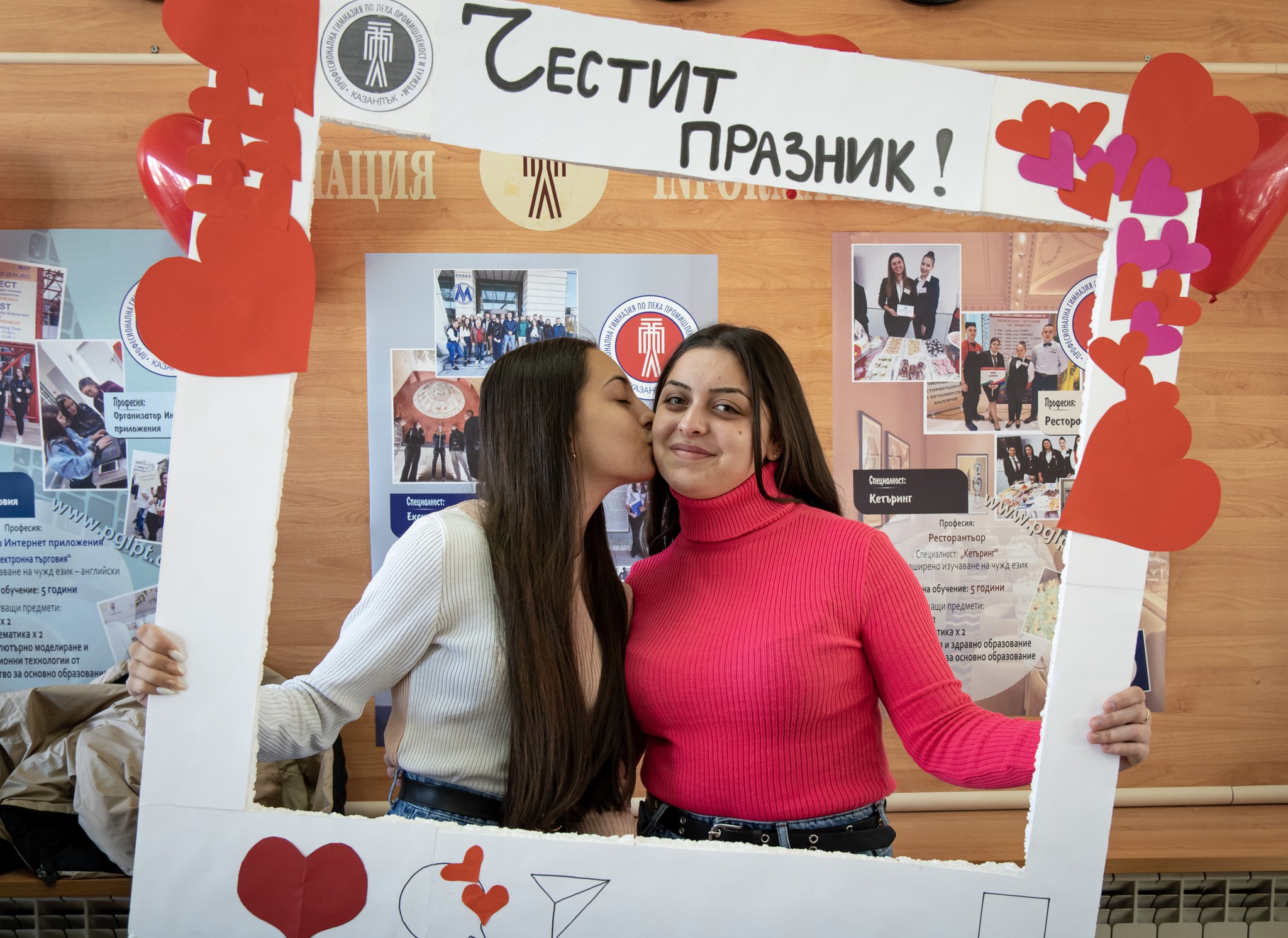 Представителите на училищният ученически съвет на ПГЛПТ не смогваха да приемат стотиците валентинки, а специалната кутия се препълни догоре. В края на учебния ден символичните символи на любовта намериха и усмихнаха своите притежатели. Красива празнична фоторамка провокира много от учениците да се съберат заедно.