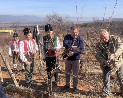 Иса Бесоолу и домакинът Христо Мъников зарязаха лозите и пожелаха по-богата реколта от миналогодишната.