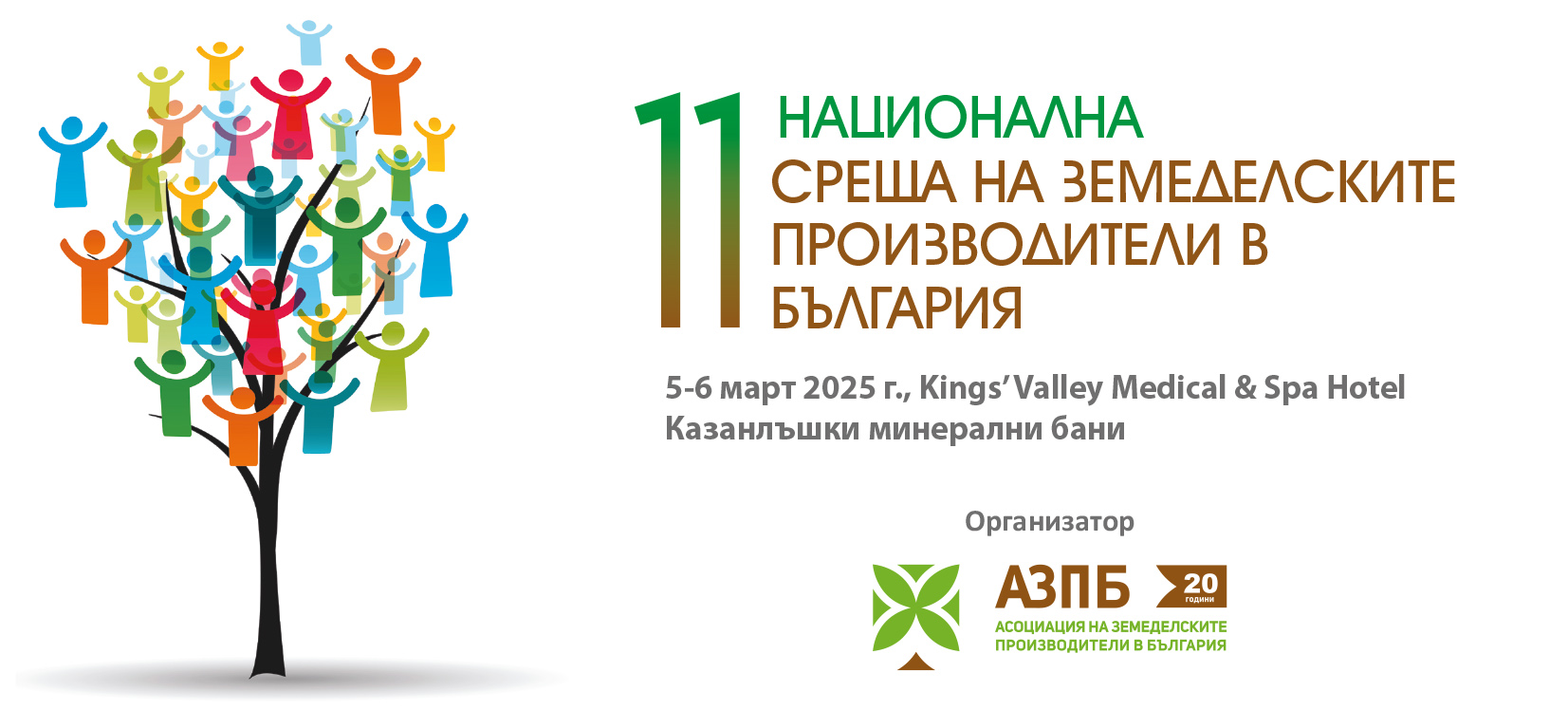 11-та Национална среща на земеделските производители, посветена на най - актуалните теми в сектора, като технологиите в земеделието, осигуряването на квалифицирана работна сила, устойчивостта и справянето с глобалните предизвикателства, бъдещето на арополитиката в ЕС, новостите при директни плащания, еко-схеми, интервенции за биоземеделие и агроекология, ще се проведе на 5 и 6 март 2025 г. в Kings` Valley Medical & Spa хотел, в Казанлъшки минерални бани.