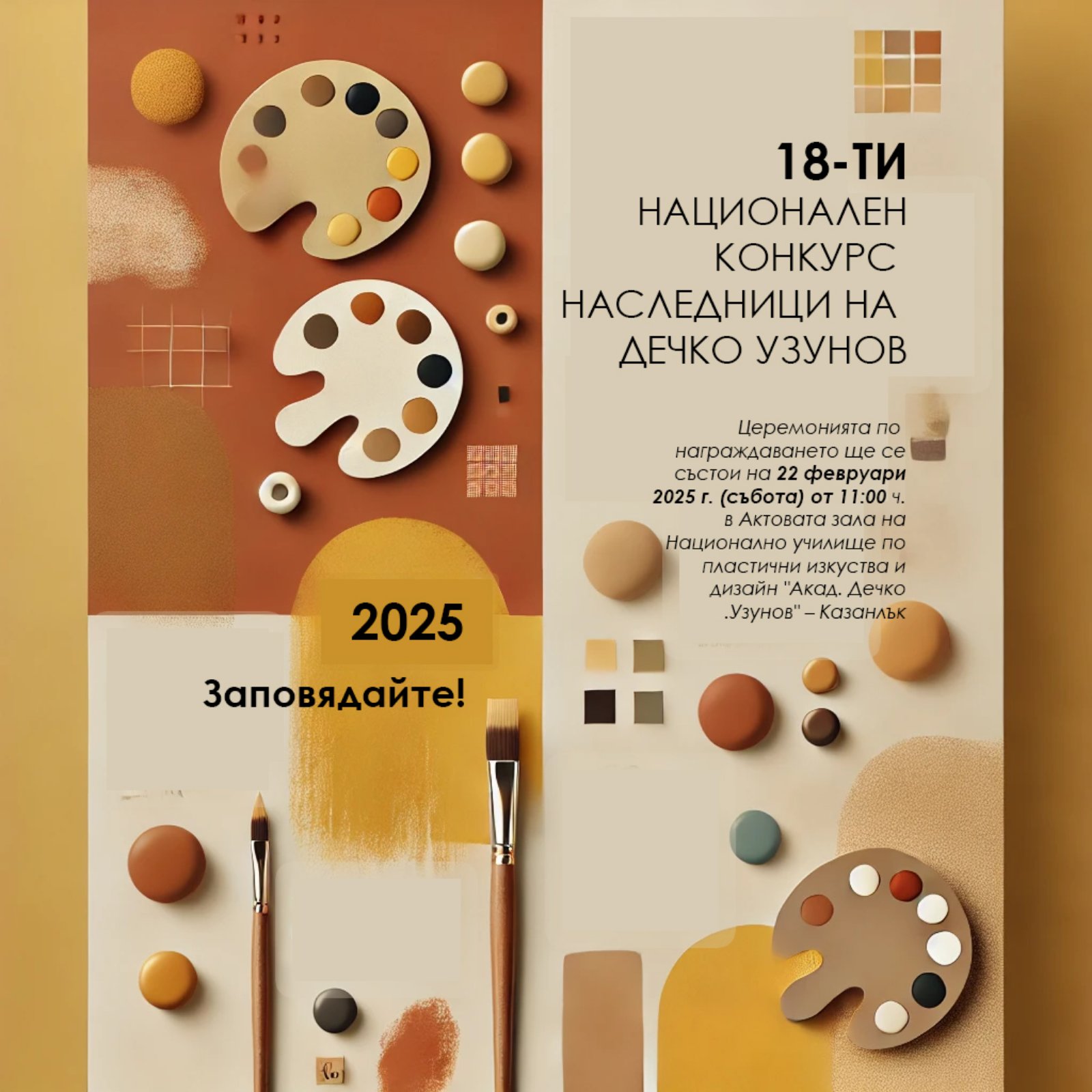 На 22-ри февруари, от 11ч., в Актовата зала на НУПИД "Акад. Дечко Узунов" ще се проведе церемония по награждаване на победителите в 18-тия Национален конкурс "Наследници на Дечко Узунов".