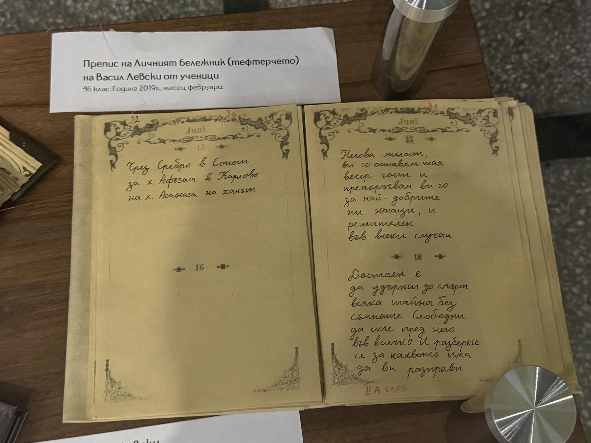 Голям интерес сред посетителите предизвикаха фототипното издание на тефтерчето на Левски, точен препис на същото от ученици на випуск 2019 г. и „Моята книга за Левски“, създадена от ученици през 2021 г.