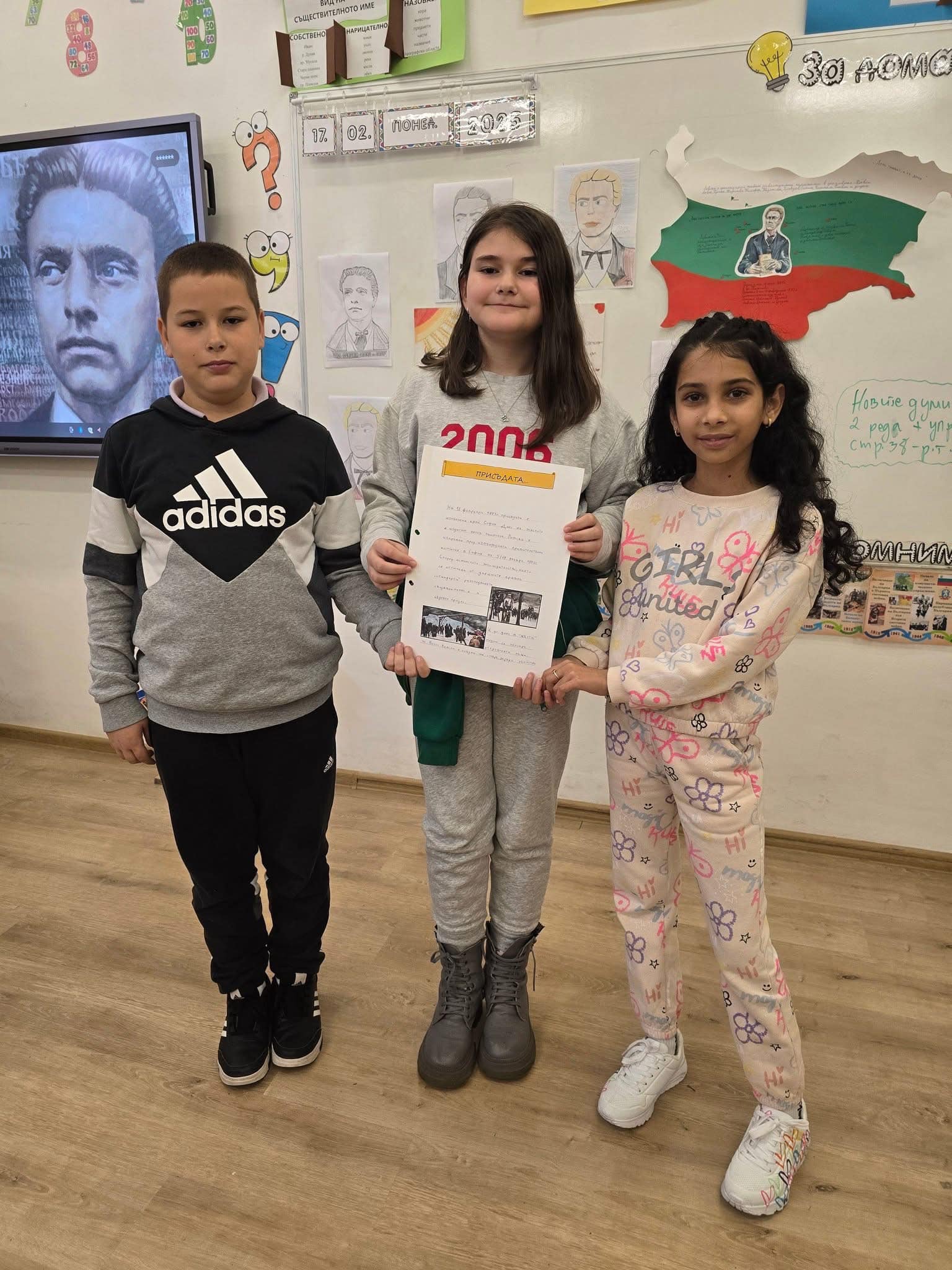 Днес учениците от 3.в клас с класен ръководител г-жа Антония Димитрова имаха много важна и специална задача. В навечерието на 152-та годишнина от гибелта на Апостола на свободата те създадоха своя книжка за него.