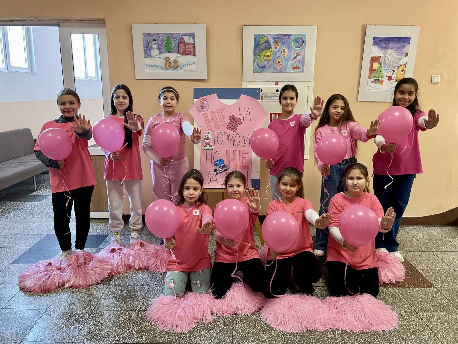 Днес в ОУ „Чудомир“, град Казанлък ученици и учители отбелязаха Деня на розовата фланелка, закичвайки се с розови фланелки и стикери. В знак на съпричастност и да не затваряме очите си, когато някой е подложен на насилие и унижения, в двора на училището беше образувана фигура във формата на сърце.