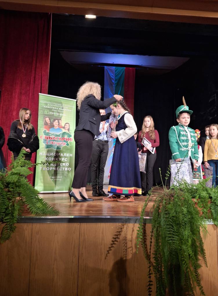 С пожелание да бъдат здрави, щастливи, да растат под мирно небе и да покоряват големите сцени, кмета на гр. Шипка Василка Панайотова награди лауреатите от конкурса, които получиха златни медали, грамоти за участие, подаръци и скъп спомен от участието си в гала- концерта.