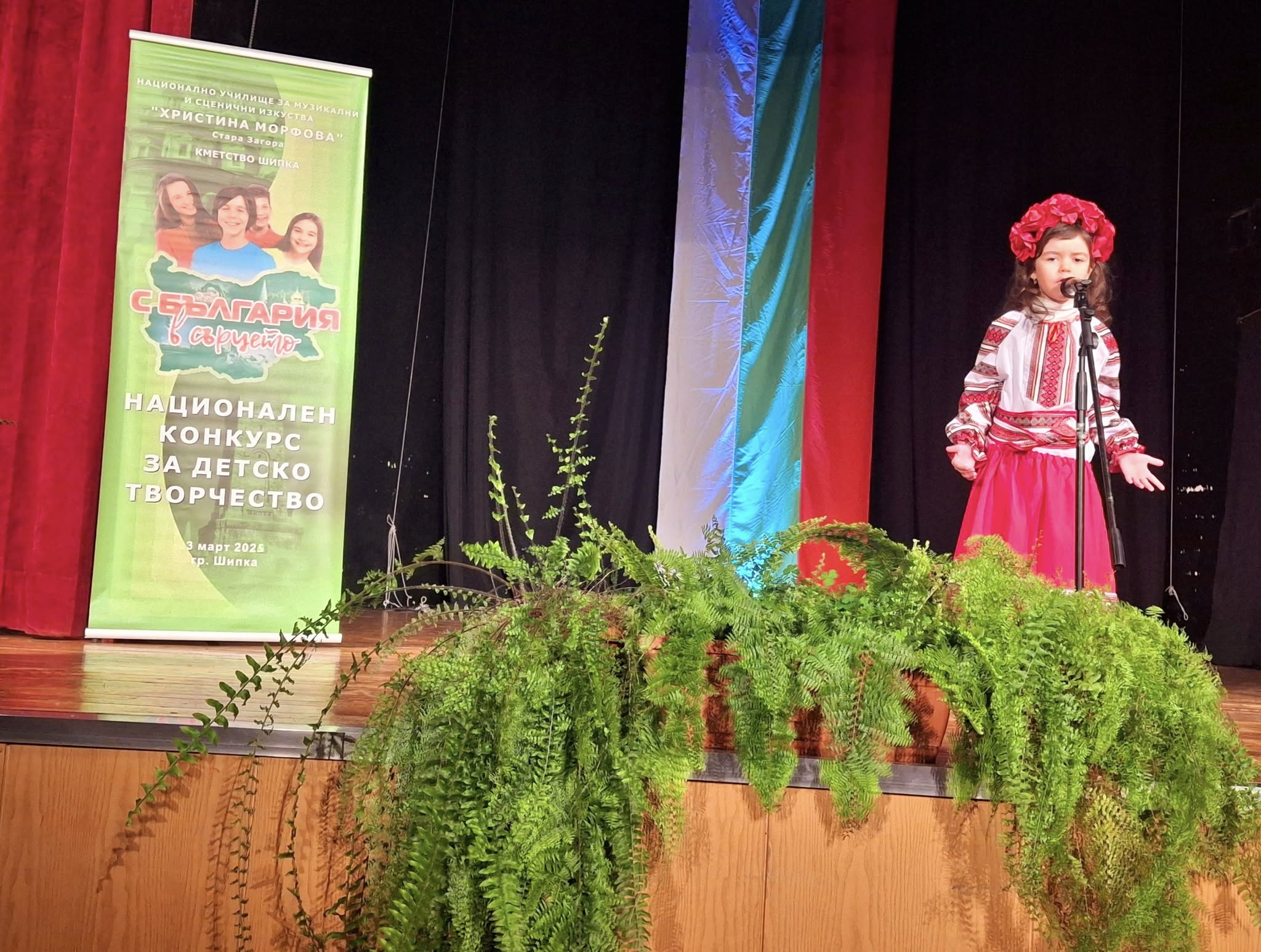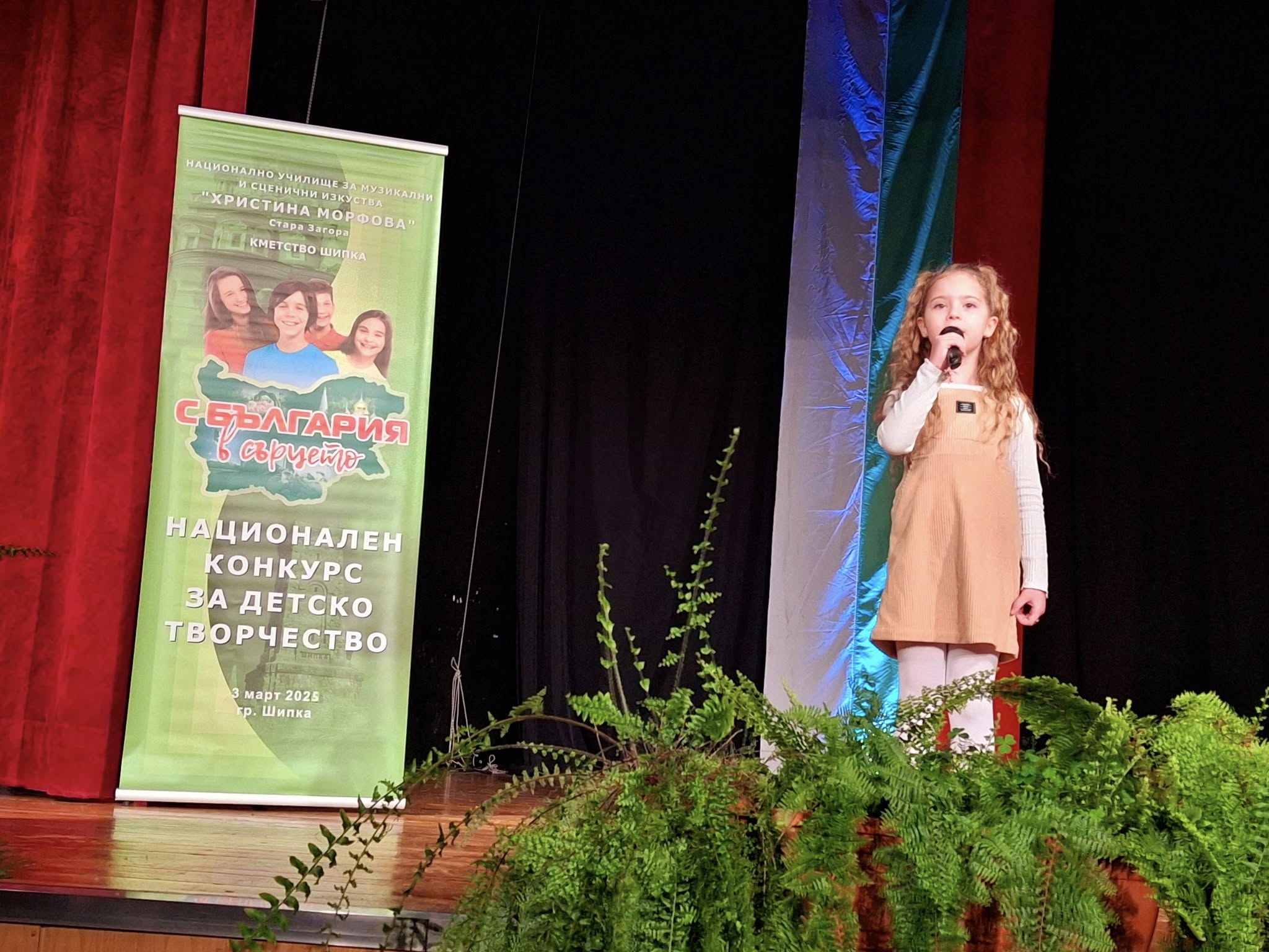 На сцената nа Военен клуб - Казанлък, на 3 март се изявиха лауреатите от четвъртото издание на Националния конкурс за детско творчество „С България в сърцето“, който за поредна година се проведе под патронажа на Кметство- Шипка и по инициатива на Надя Тончева- музикант, педагог и организатор на музикални събития и фестивали.