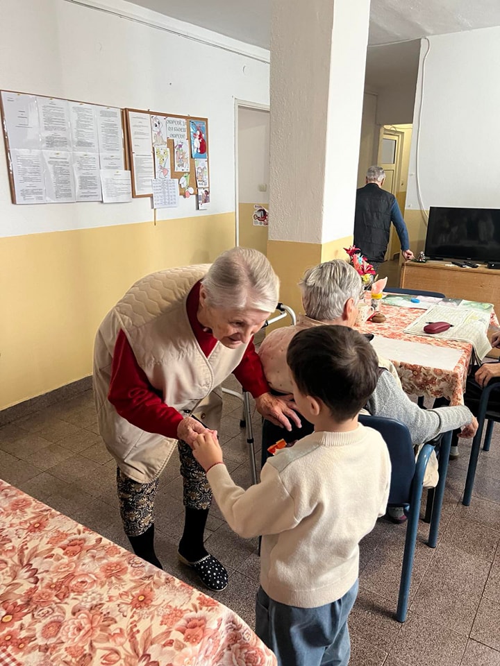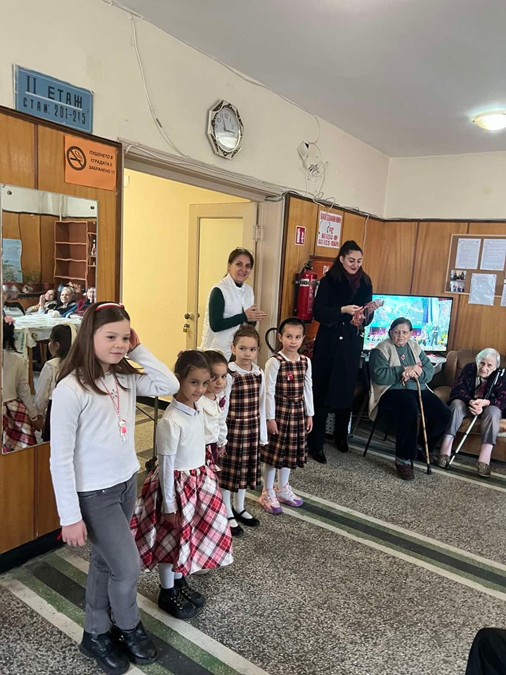 Малчуганите сгряха сърцата и усмихнаха възрастните хора от ДСХОЛ "Маргарита Асебо" с три тематични за празничните дни песнички, а малкия Едиз закичи възрастните дами от Дом 3 и им пожела здраве и усмивки.