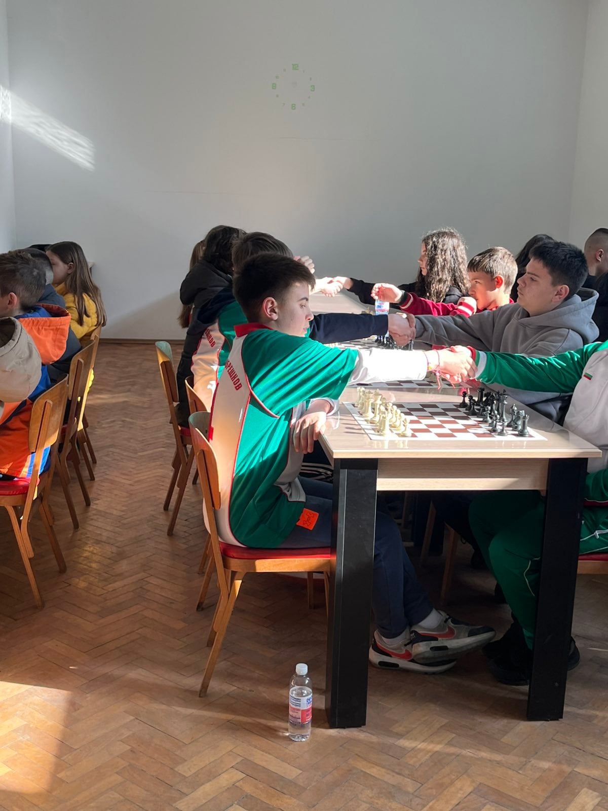 На общинското първенство по шахмат за ученици 5.-7. клас, отборът на ОУ "Мати Болгария" зае второто място.