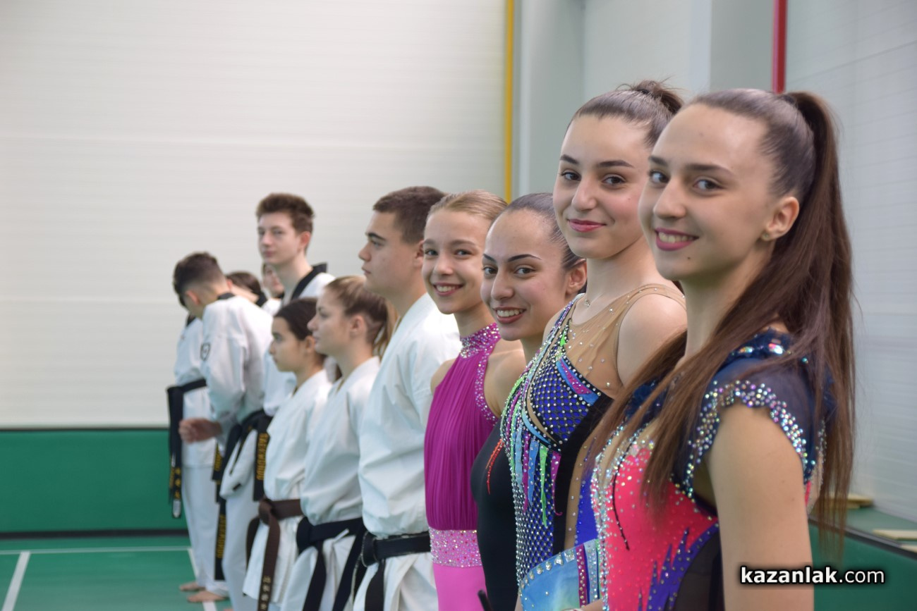 В края на празненството ученици на ППМГ, изявени в различни спортове, представиха своите учения в кратка демонстрация. Първи бяха представителите на Карате – До Шотокан с майсторска степен „черен колан“, последвани от таекуондистите с майсторска степен 1-ви дан „черен колан“, и завършиха с изящното съчетание на момичетата от отбора по художествена гимнастика при клуб „Казанлък“.
