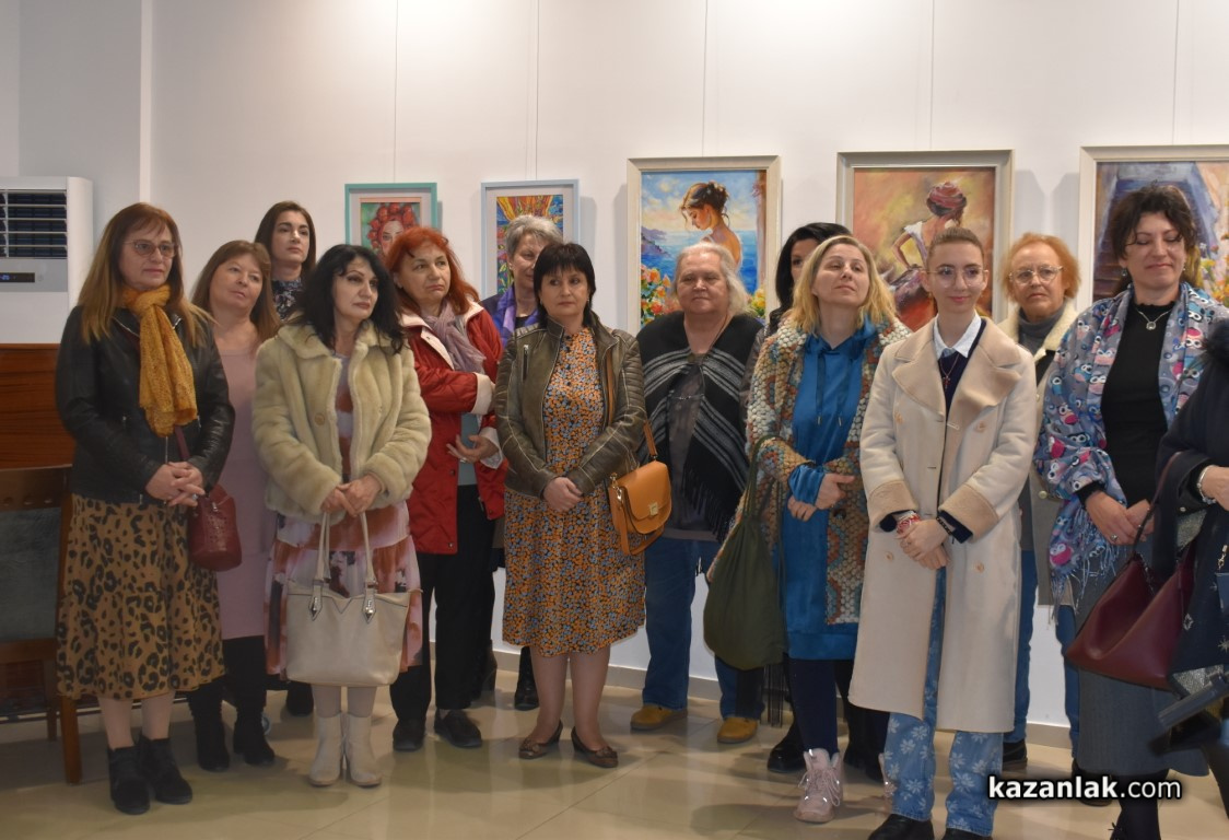 В навечерието на Деня на жената, в зала "Иван Милев" беше открита традиционната изложба на жените творци от община Казанлък „Женското начало". Едно от най-очакваните, красиви и емоционални културни събития в Казанлък препълни залата с приятели и ценители на изкуството. Различни в своето творчество, пресъздадени мисли, чувства, разбирания и техники, произведенията на 33 дами направиха тази ежегодна изложба пъстра и празнична.