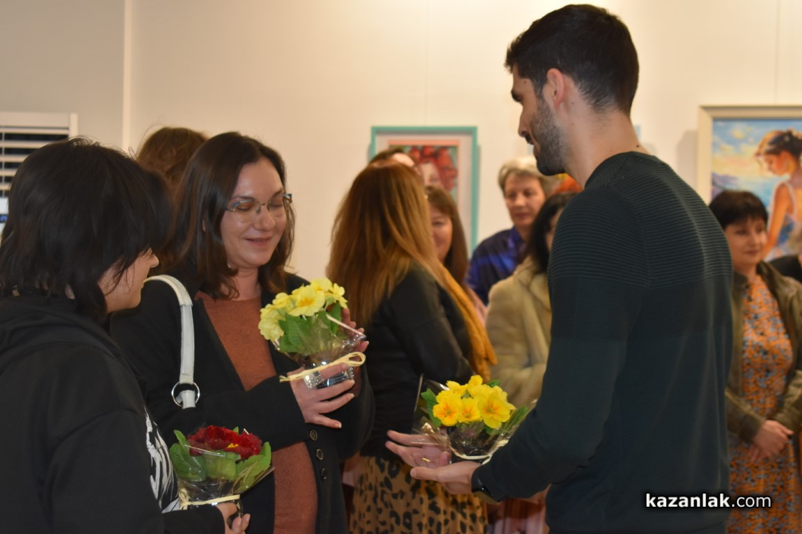 Поздрав към дамите отправи зам.-кметът на Казанлък Сребра Касева: „Пожелавам ви да се здрави и усмихнати все така, да ни дарявате с красота, защото залата е прекрасна, изпълнена с различни стилове и цветове, и с това, което вие носите във вас самите“