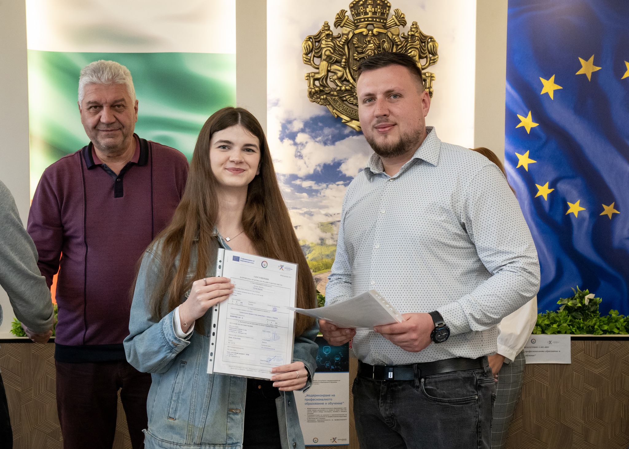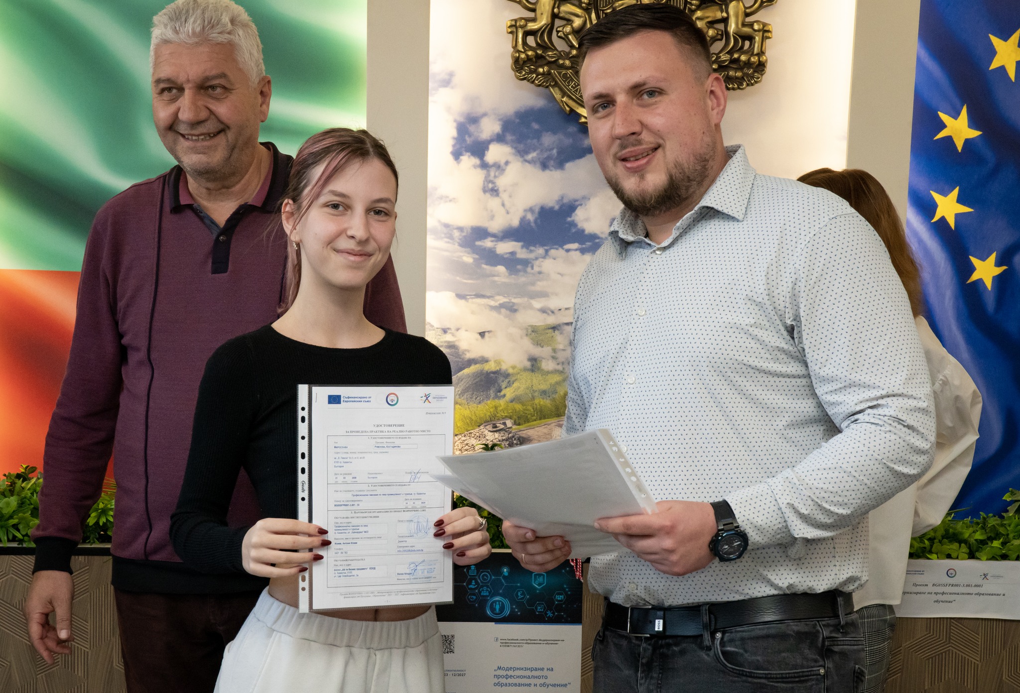 На специална церемония в гимназията, ръководството на учебното заведение и работодателите връчиха удостоверенията на всички участници.