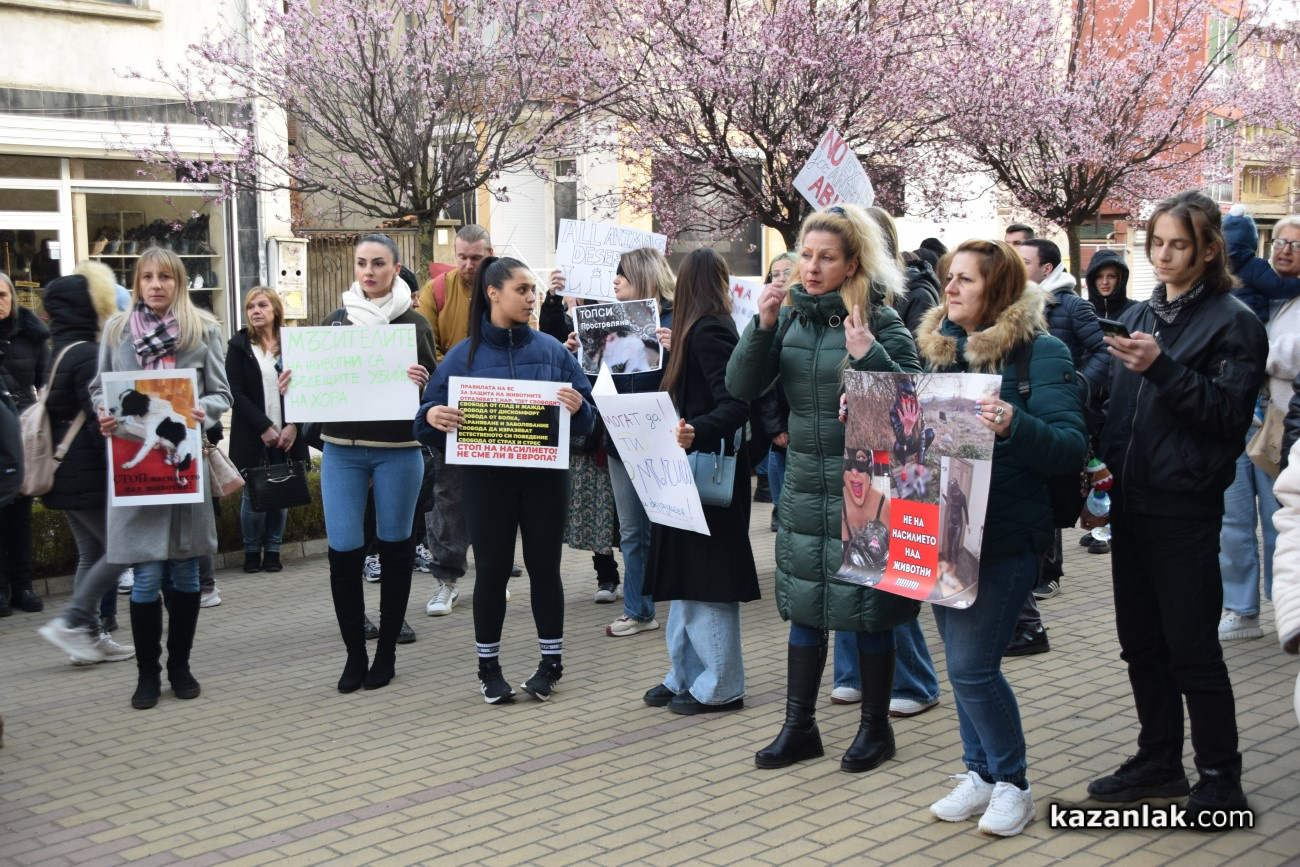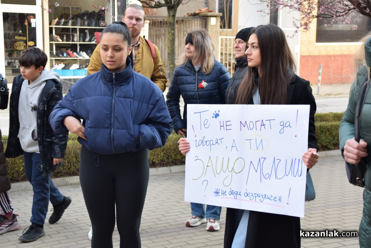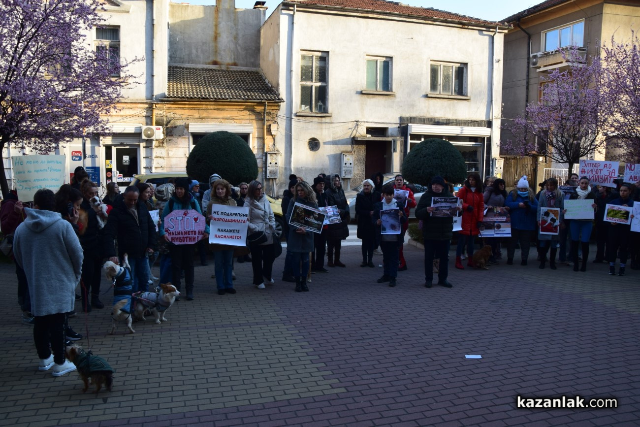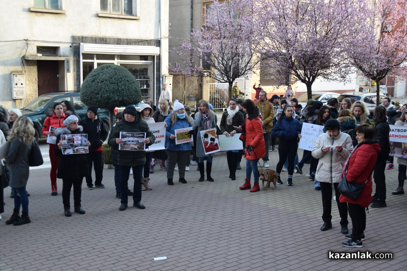 В Казанлък се проведе граждански протест пред сградата на Районния съд, с искания за справедливи присъди спрямо 26-годишната Габриела С. и 35-годишният Красимир П. от Перник, които бяха задържани и обвинени в жестокост към животни.
