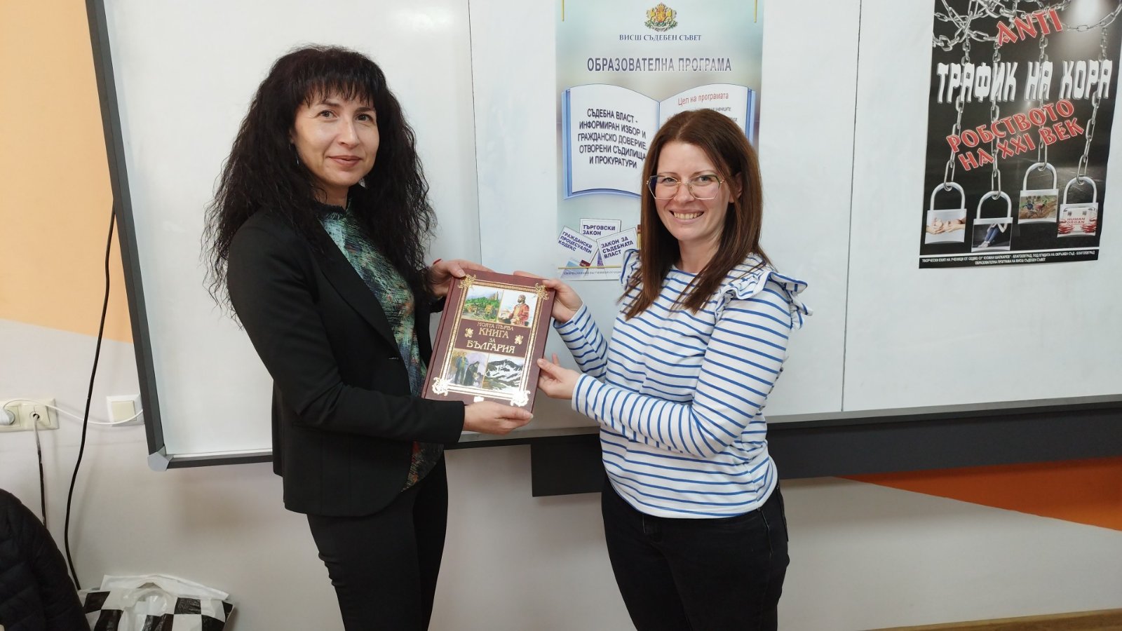Учениците взеха активно участваха в дискусията, проявиха изключителен интерес към работата и функциите на прокурора. В края на часа прокурор Добрева подари за училищната библиотека книги - енциклопедии "История на България" и "Книга за България", предоставени от ВСС.