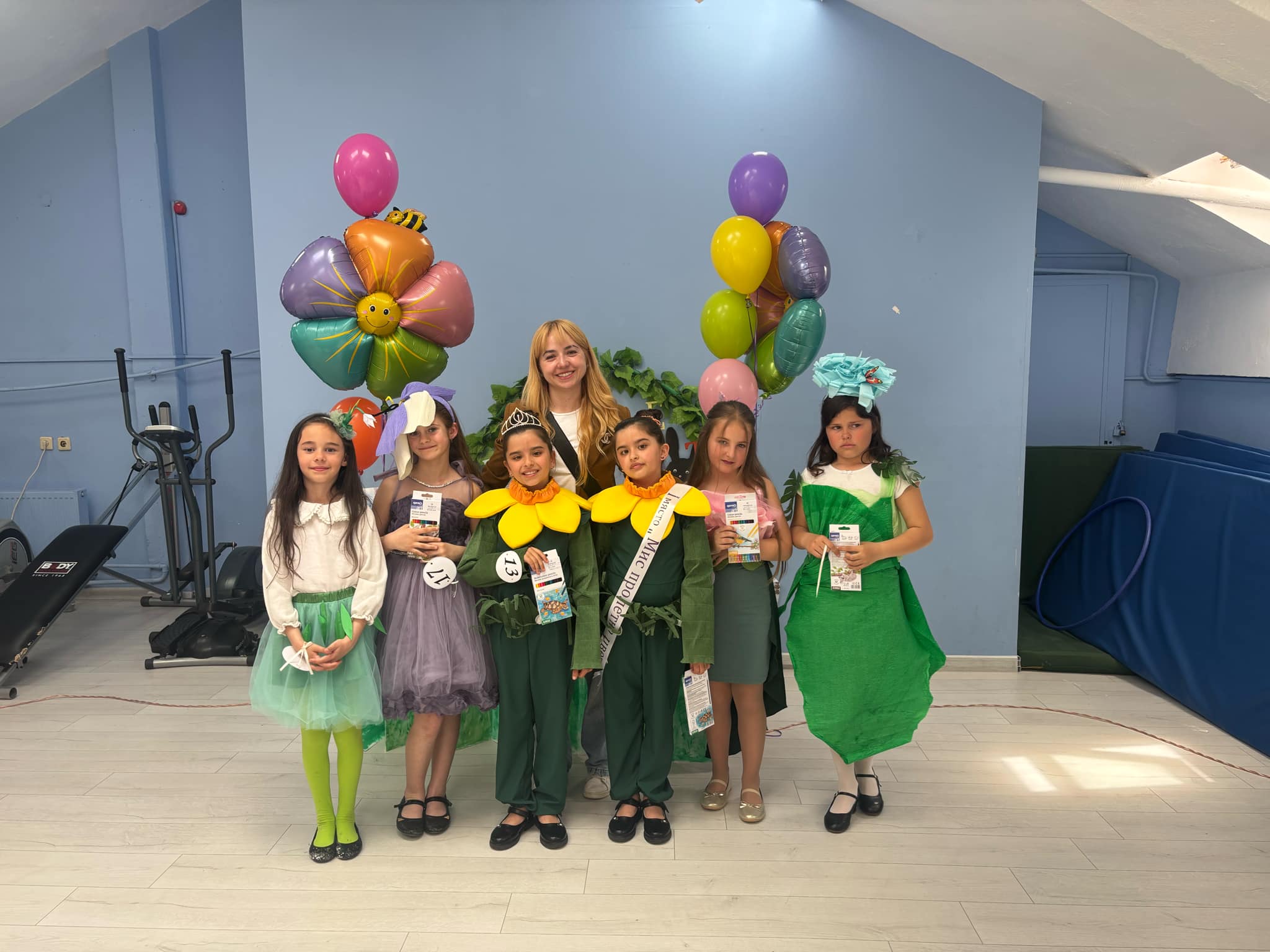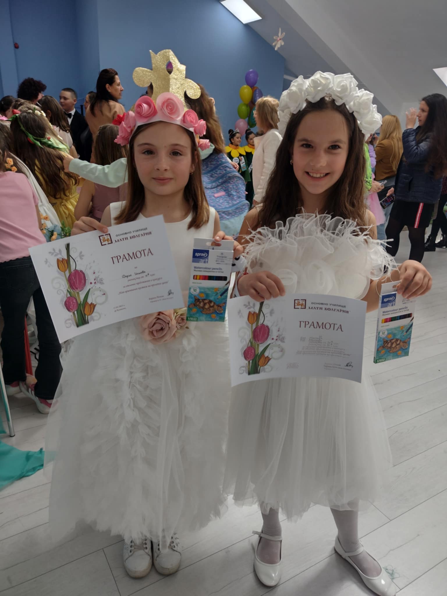 Участнички от I до VII клас разцъфнаха на сцената, превъплътени в най- красивите цветя - нежни кокичета, слънчеви нарциси, пъстри лалета и неповторими рози. Училището се превърна в истинска цветна градина.