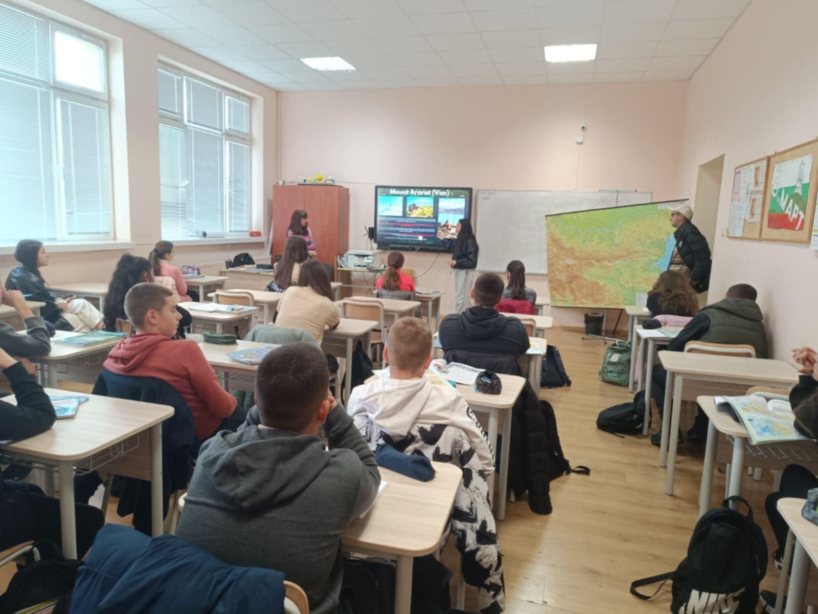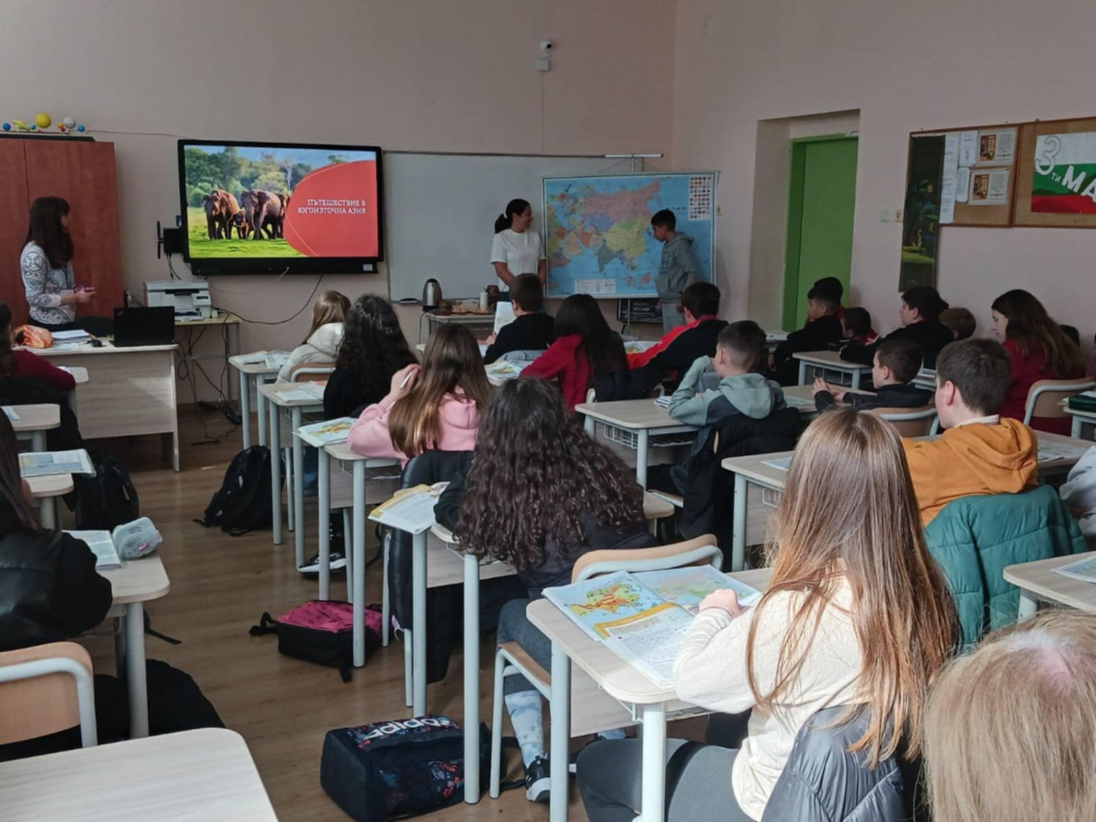 В ОУ "Мати България" гр.Казанлък се проведе мултидисциплинарен урок по география и икономика в 7.в клас с преподаватели г-жа Даниела Башкехайова и г-жа Анастасия Пиронкова. Гост- лектори бяха доброволци от Центъра за взаимопомощ в Казанлък.