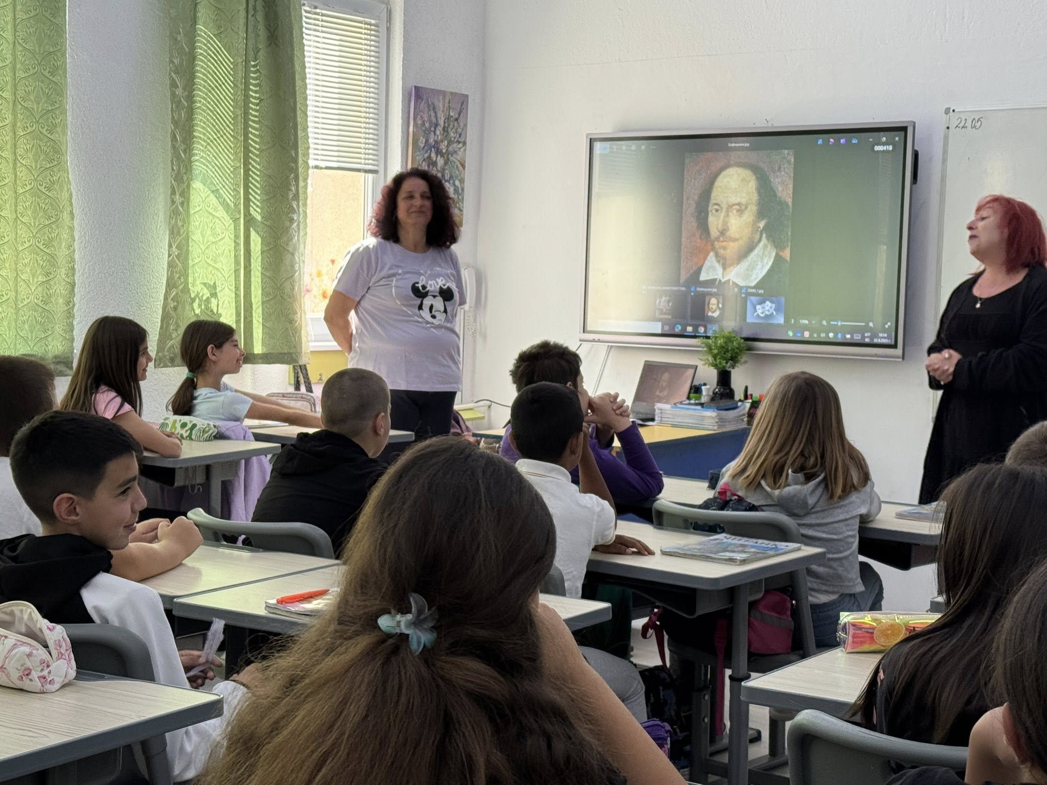 Инициативата е по повод годишнина от раждането и смъртта на великия английски драматург, актьор и поет Шекспир. Четвъртокласниците влязоха в непринуден разговор с актрисата, свързан с нейния творчески път. Тя ги запозна с магията на театралното изкуство, демонстрира превъплъщения в образи и етюди с елементи на кукловодство.