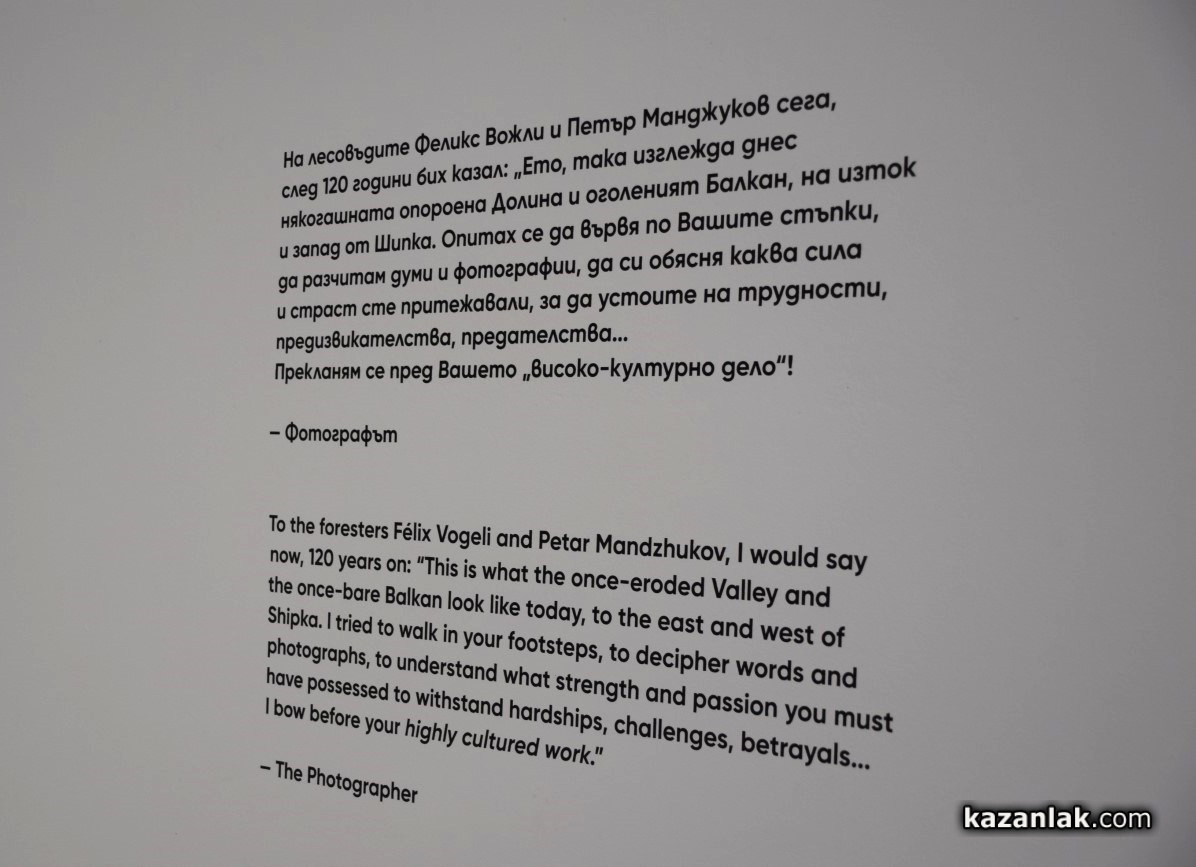 В Къща музей „Ненко Балкански" се състоя откриването на изложбата „Началото. Укрепяване на пороите и залесяване", посветена на делото на Феликс Вожли и Петър Манджуков. Залата на културния институт се оказа малка, защото събитието привлече множество гости от различни сфери, обединени от интереса към историята на горското дело в България.