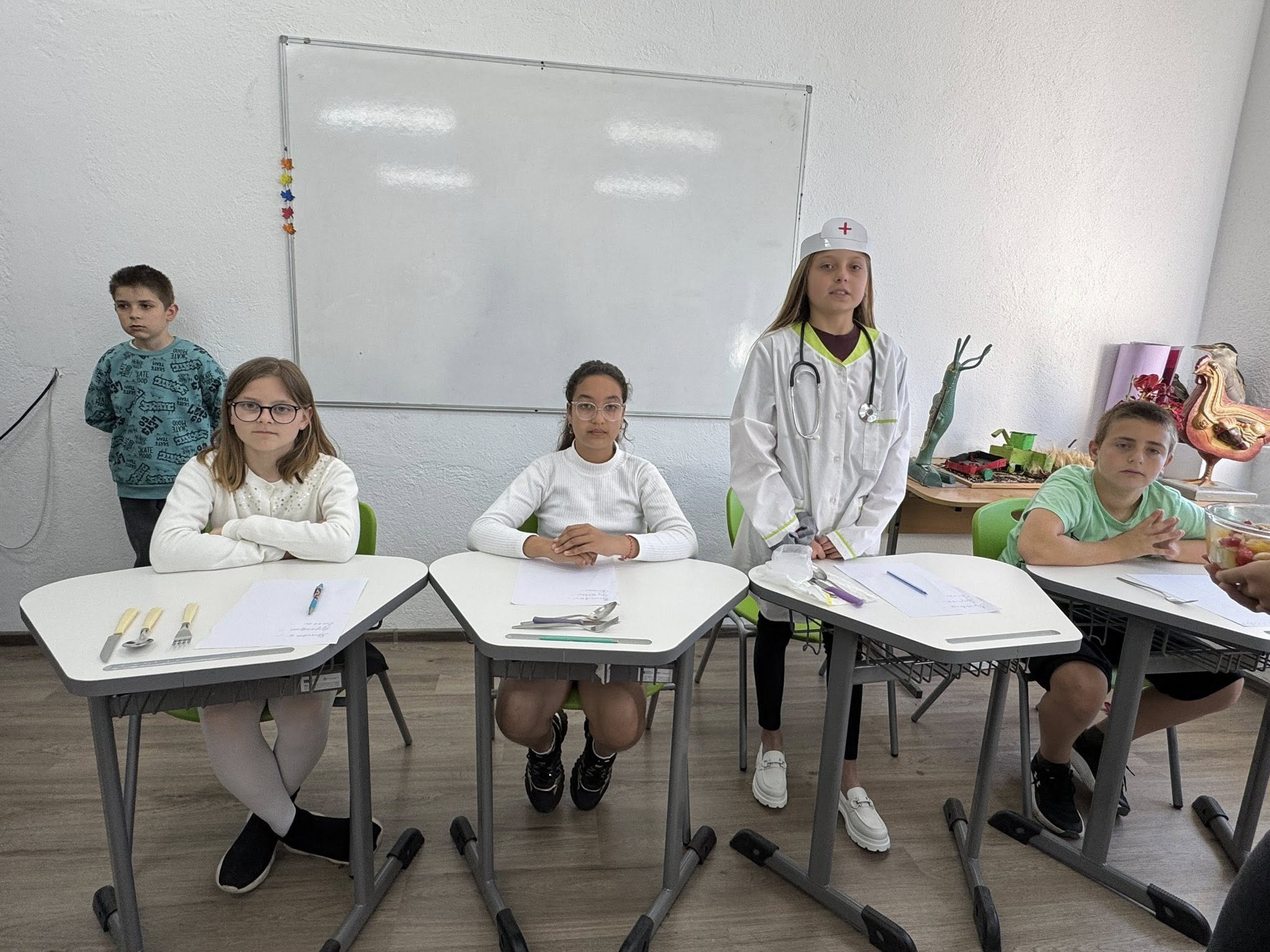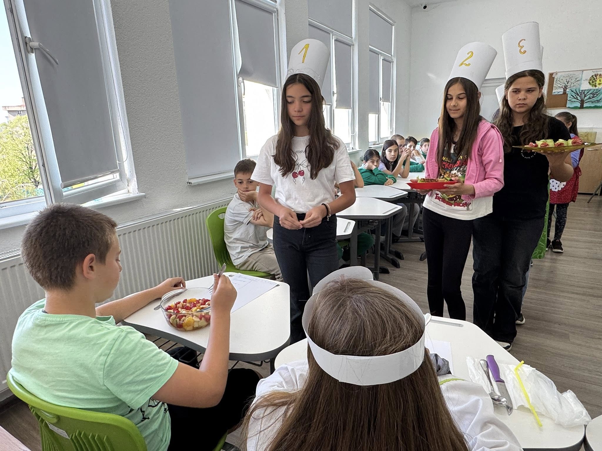 Под мотото “Здраве в чиния” учениците от 4.б клас при ОУ "Св. Паисий Хилендарски" гр.Казанлък, представиха пред своите приятели от 4.а клас забавен образователен час за балансирано и пълноценно хранене с включени съвети за физическа активност.