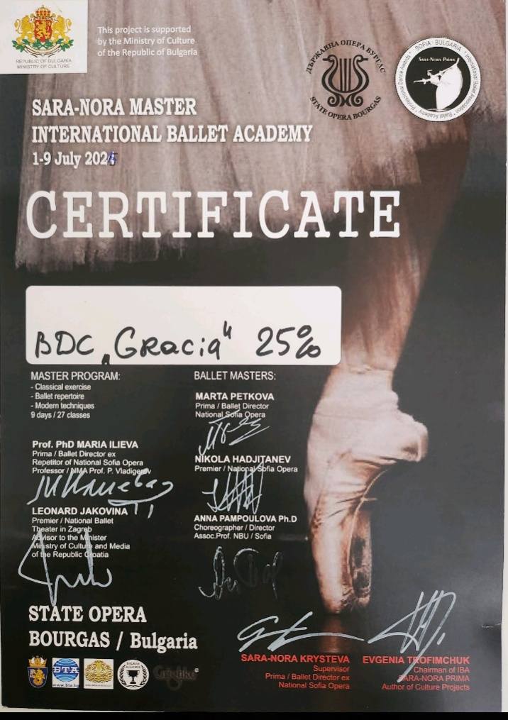 Талантливите балерини бяха не само прекрасни и грациозни, но и артистични и технични във всяко свое изпълнение, с което впечатлиха уважаемото жури и бяха високо оценени. Те получиха престижни награди от Сара- Нора Кръстева и от представител от Белградския танцов институт, както и безплатна квота за участие в танцова олимпиада в гр. Солун, Гърция - 2025 за танца ,,Руски танц''.