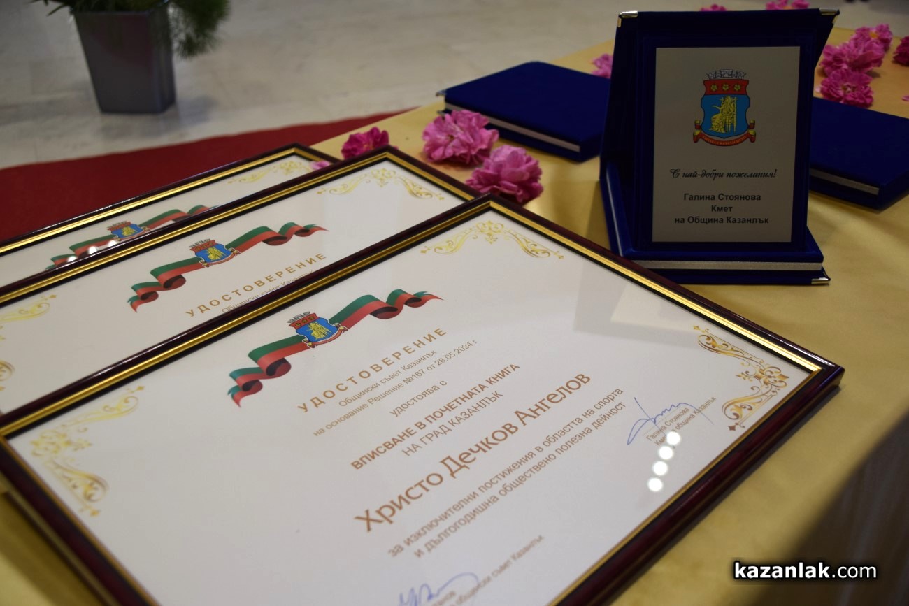Припомняме, че през 2024 г. общественикът, юрист и краевед Стефан Саранеделчев стана „Почетен гражданин на Казанлък", а в Почетната книга на града бяха вписани имената на спортистите и обществени дейци Христо Ангелов и Ради Милев.