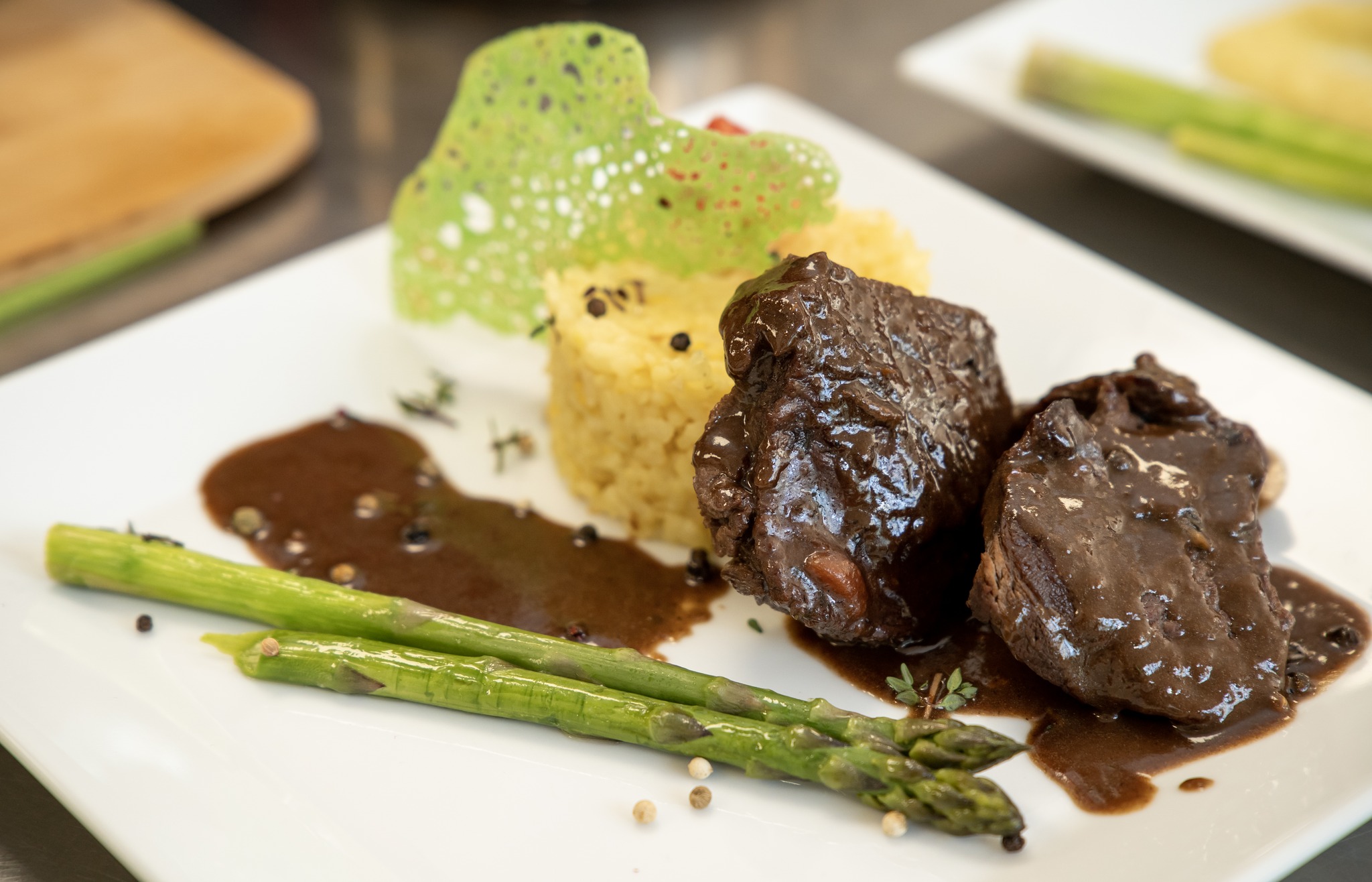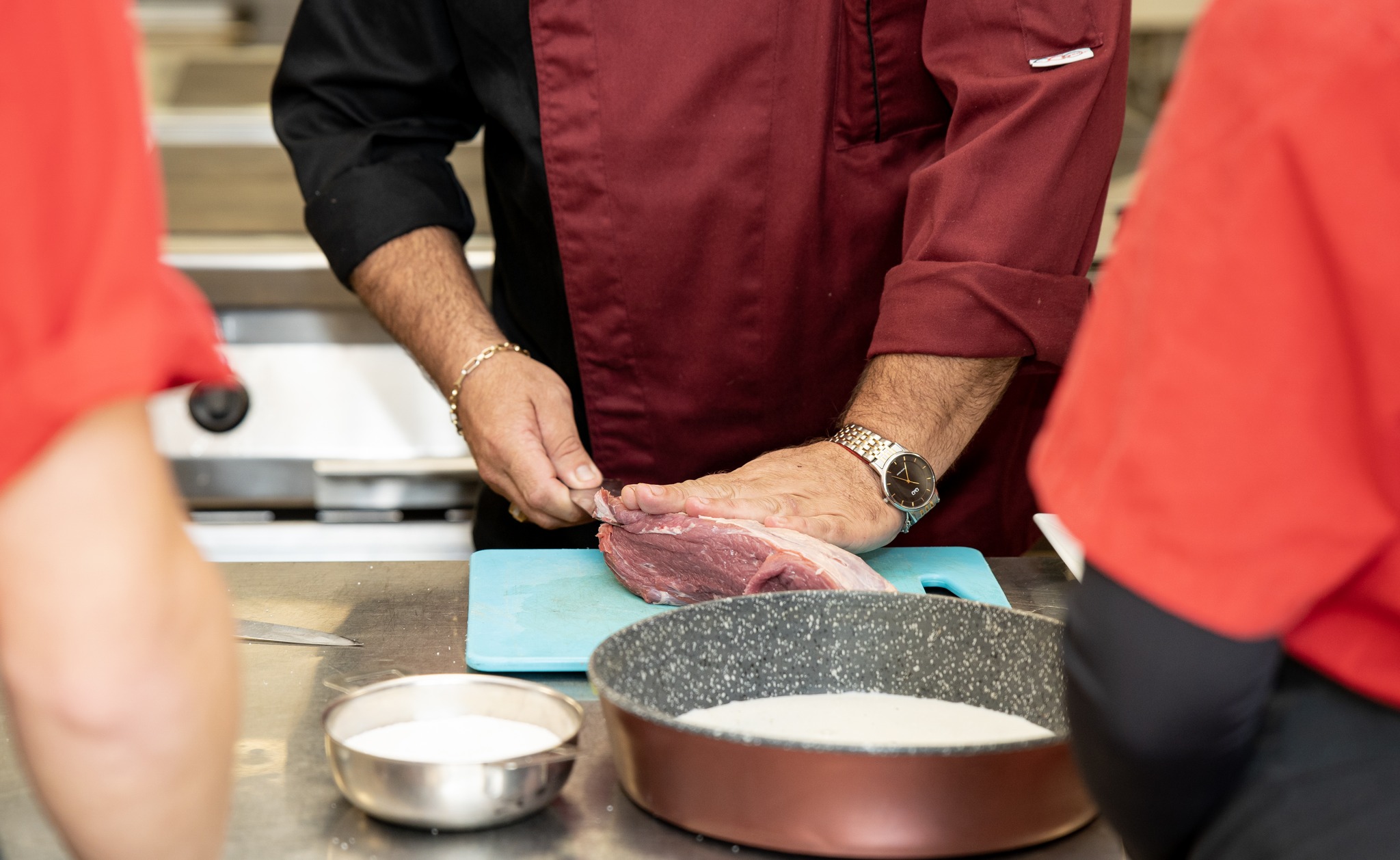Кулинарният майстор демонстрира пред учениците различни техники и им даде професионални съвети за бъдещата им работа в кухнята и ресторанта. Заедно с тях шеф Петков приготви основно ястие и десерт. Специалитетът му „телешки стекчета с шафранов ориз и диворастящи гъби, пюре от ананас и билкова дантела“ , не просто впечатли присъстващите на мастъркласа, но ги провокира да мислят иновативно в кухнята. Десертът – шоколадово суфле – също не остави равнодушен никого в кухнята на ПГЛПТ.