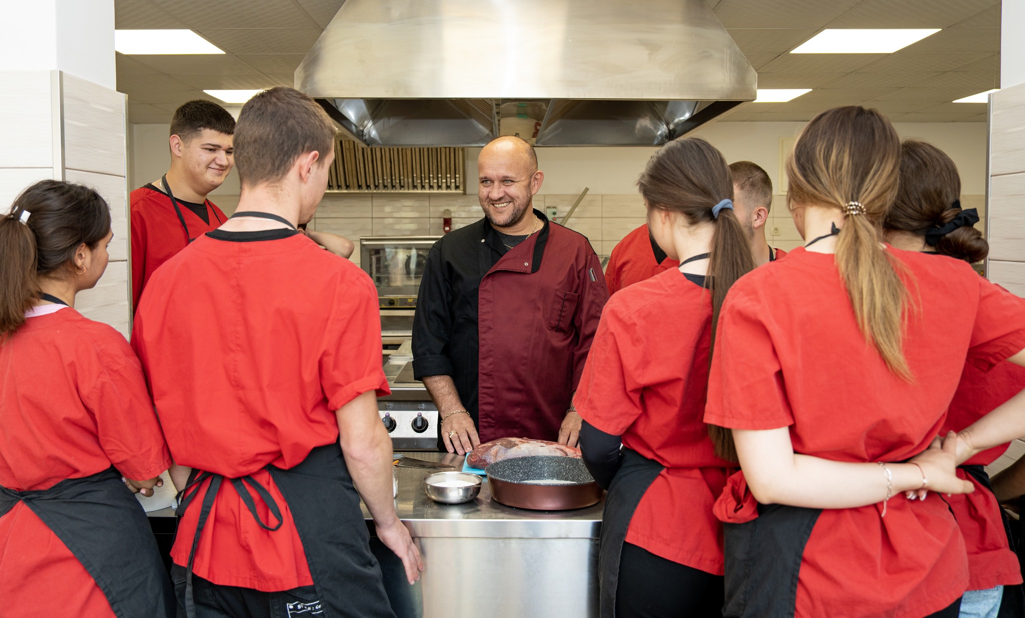 Впечатляващ кулинарен мастърклас се проведе в ПГЛПТ, като част от събитията, отбелязващи 60-та годишнина на гимназията. Единадесетокласните от специалност „Кетъринг“, попиваха знания от един от най-добрите и опитни готвачи в Казанлък – шеф Петко Петков.
