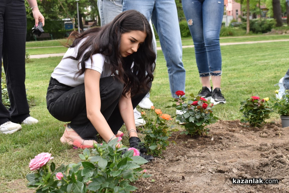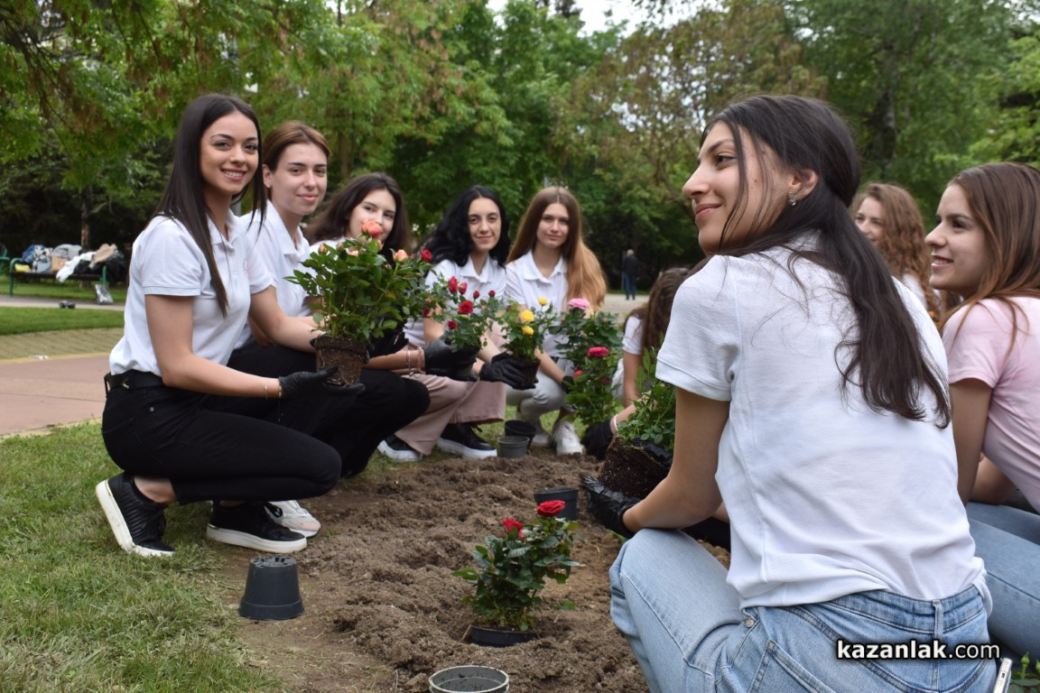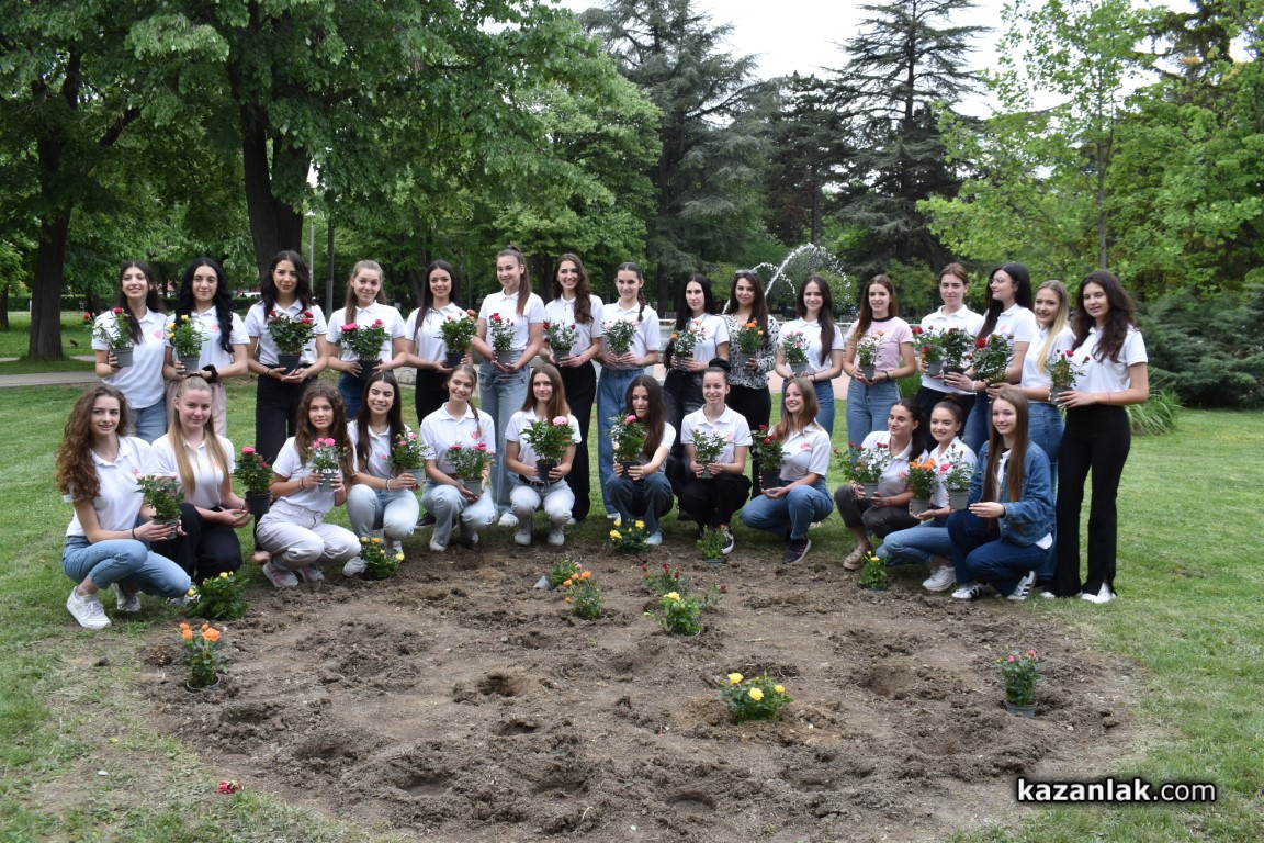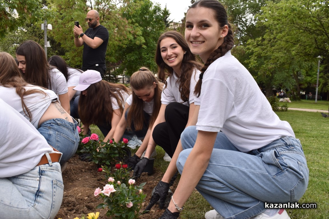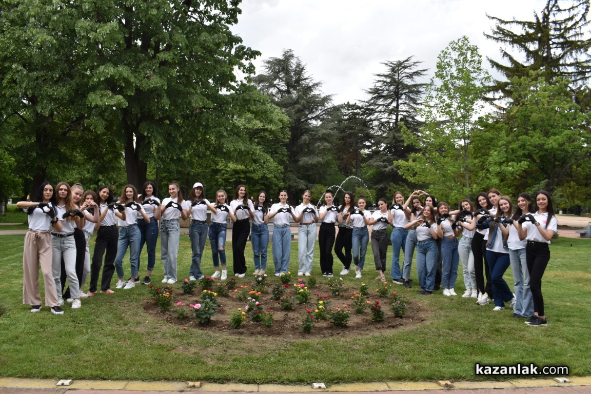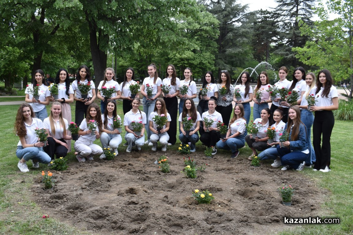 Претендентките за короната на Царица Роза 2025 разкрасиха Розариума с емблематичното и символично цвете за Казанлък - розата. 33-те чаровници, борещите са приза за най-красива абитуриентка, спазиха обичая да дадат своя принос със засаждането на стрък роза в парка. Така, кандидатките за царската корона, създадоха своя красив кът, намиращ се непосредствено до Музея на розата.