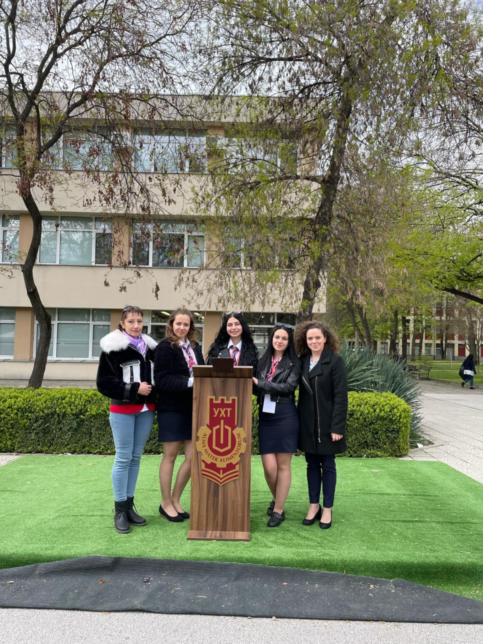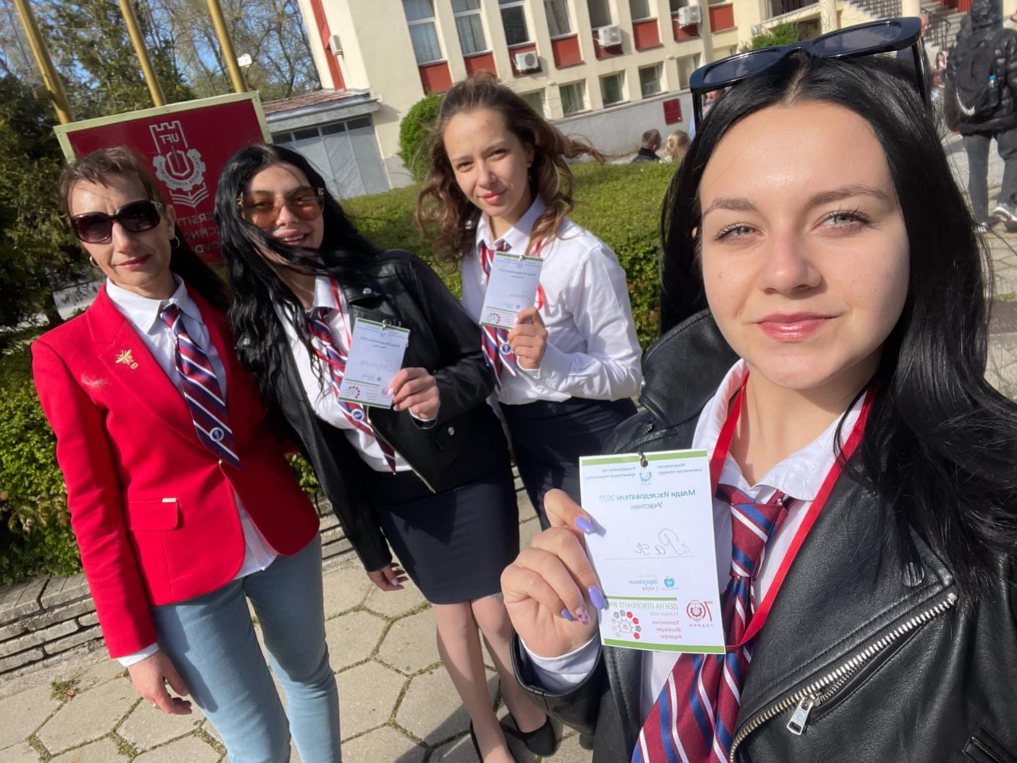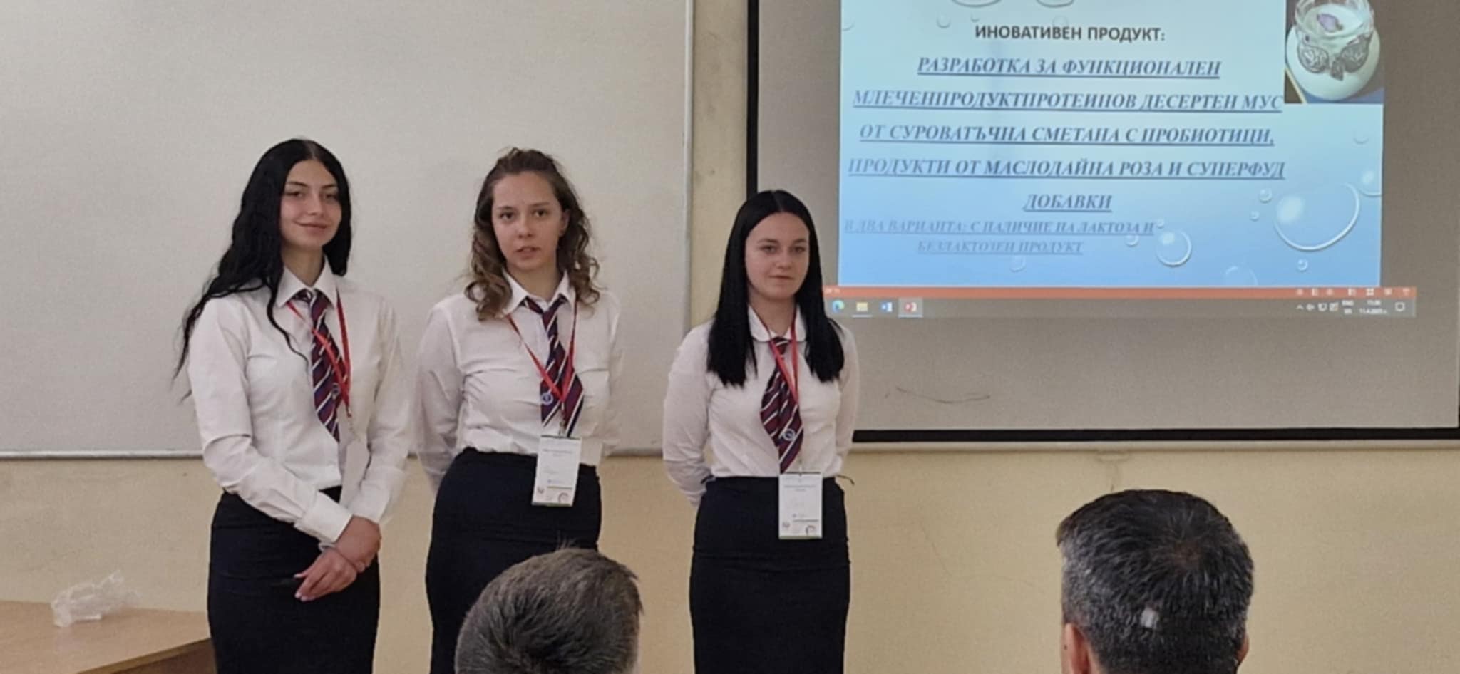 Представители на Професионална гимназия по лека промишленост и туризъм участваха в конкурса „Млади изследователи 2025“ на Университета по хранителни технологии в град Пловдив. Доника Бижева, Рая Димитрова и Габриела Павлова избраха да участват в направление „Храни и напитки“ и разработка по казус: „Иновации в храни и напитки – биохрани, суперхрани, натурални компоненти в храни, нови технологии“ на тема „Производство на млечни продукти от суроватъчна сметана“. Трите момичета се обучават в 11в клас, специалност „Кетъринг“, а техен училищен ментор бе инж.технолог Нели Добрева-Налбантова.